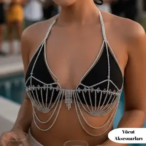 Gümüş Renk Taş ve İnci Detaylı Tasarım Bel Zinciri/Vücut Aksesuar