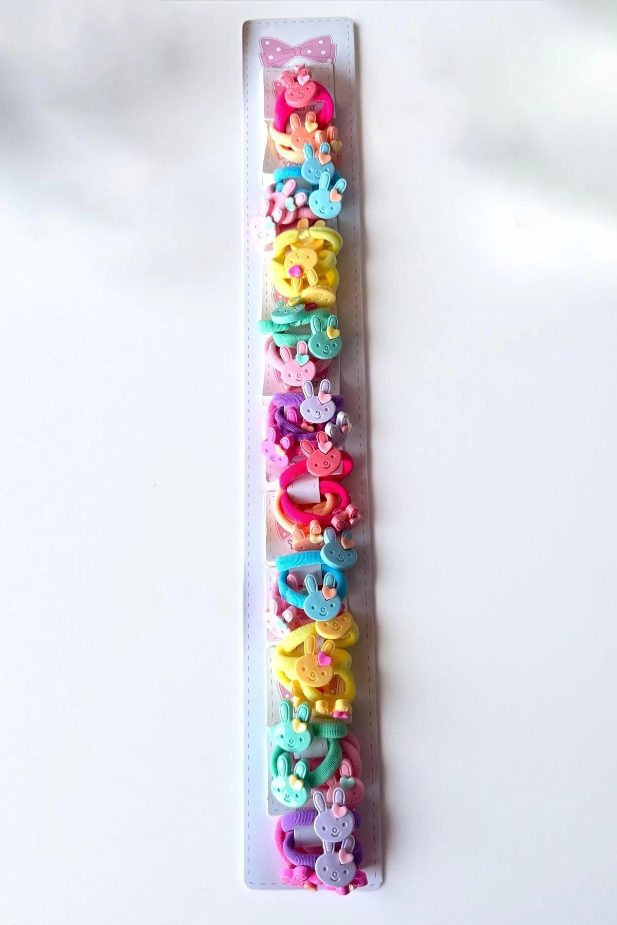 10'lu Karışık Renk Tavşan Figürlü Lastik Toka Set