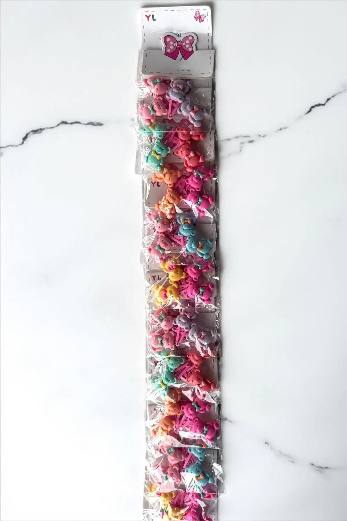 10'lu Karışık Renk Ayıcık Figürlü Yan Toka Set