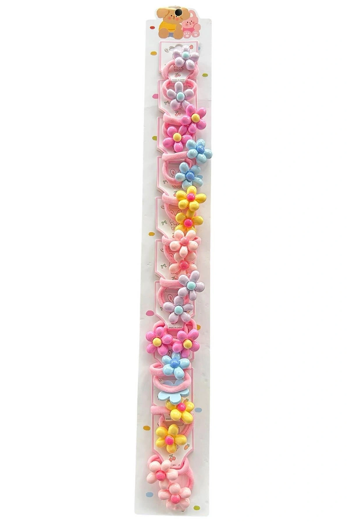 10'lu Karışık Renk Çiçek Figürlü Çocuk Lastik Toka Set