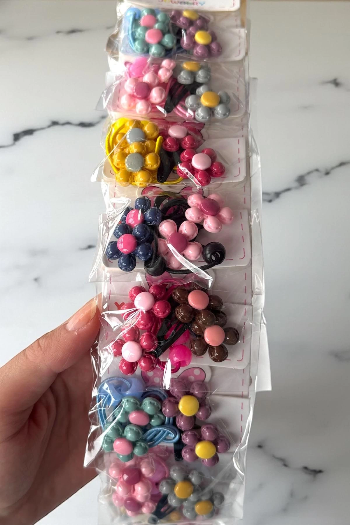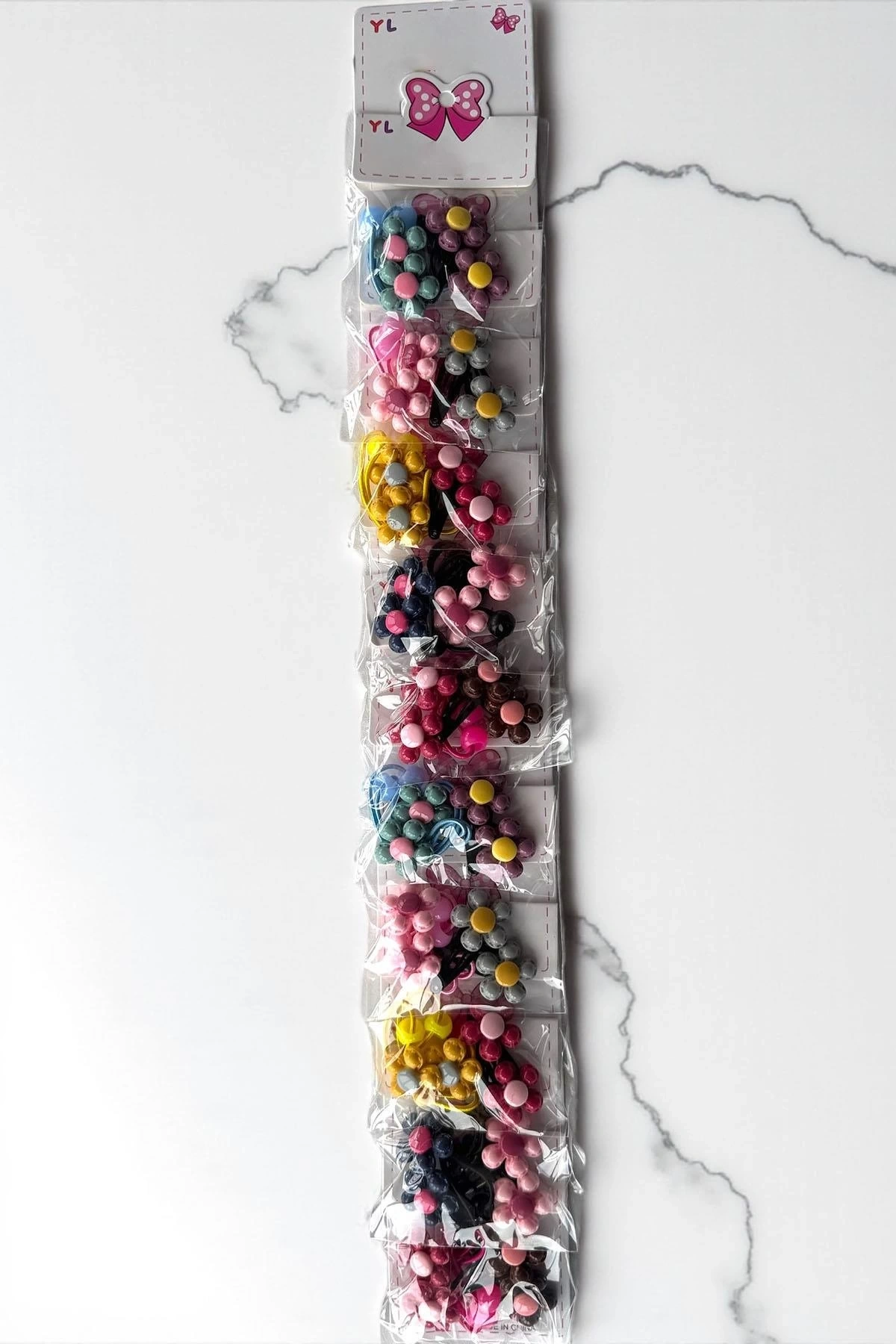 10'lu Karışık Renk Çiçek Figürlü Lastik Toka Ve Yan Toka Set