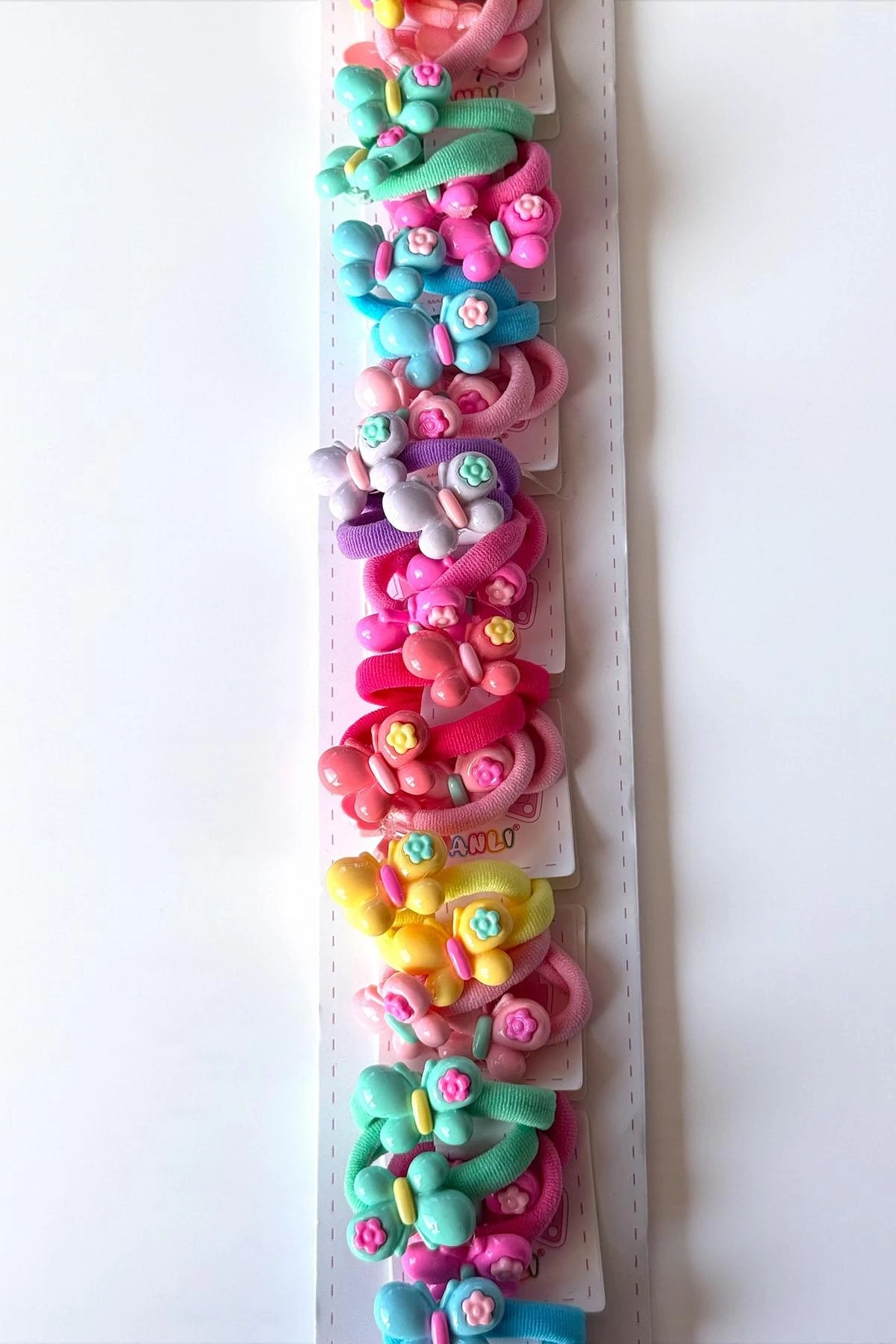 10'lu Karışık Renk Kelebek Figürlü Lastik Toka Set