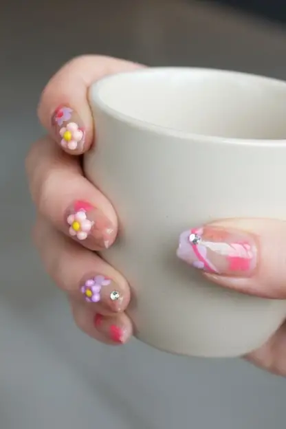 10'lu Karışık Renk Kurdele Ve Çiçek Figürlü Takma Tırnak Set