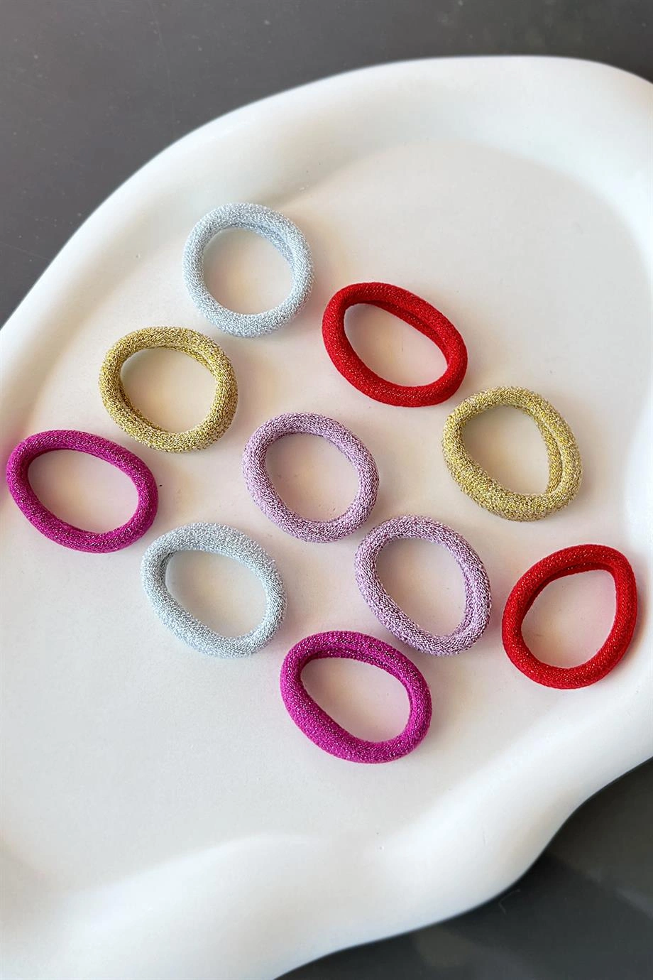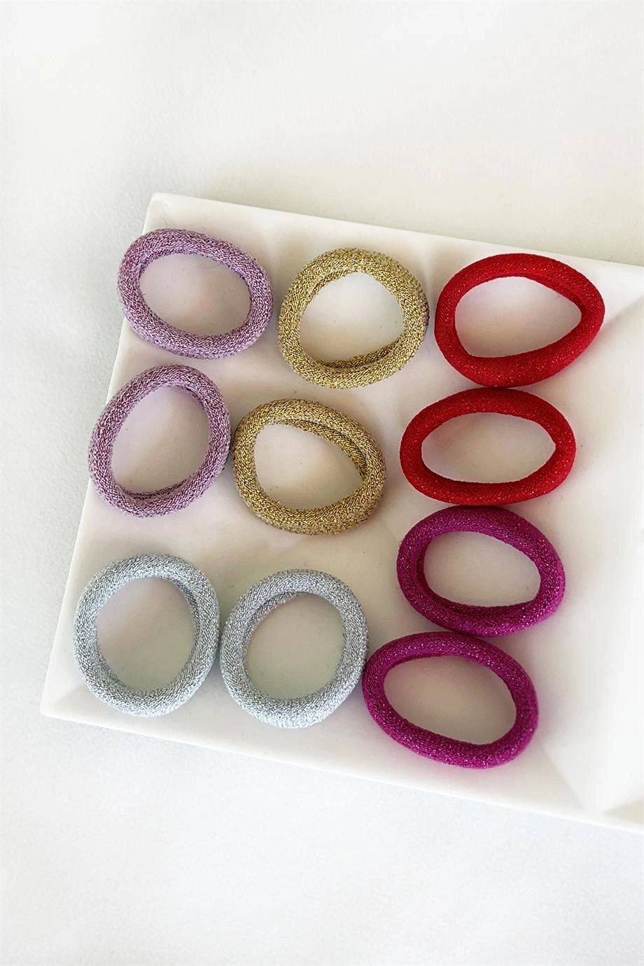 10'lu Karışık Renk Simli Havlu Lastik Toka