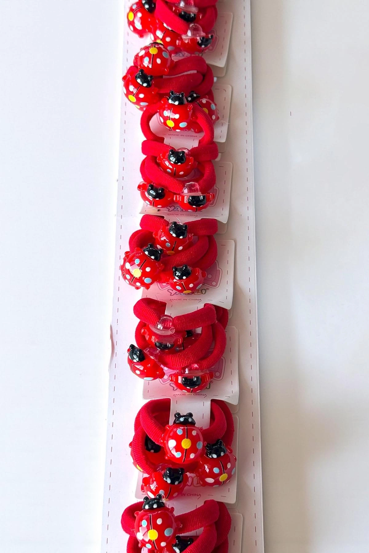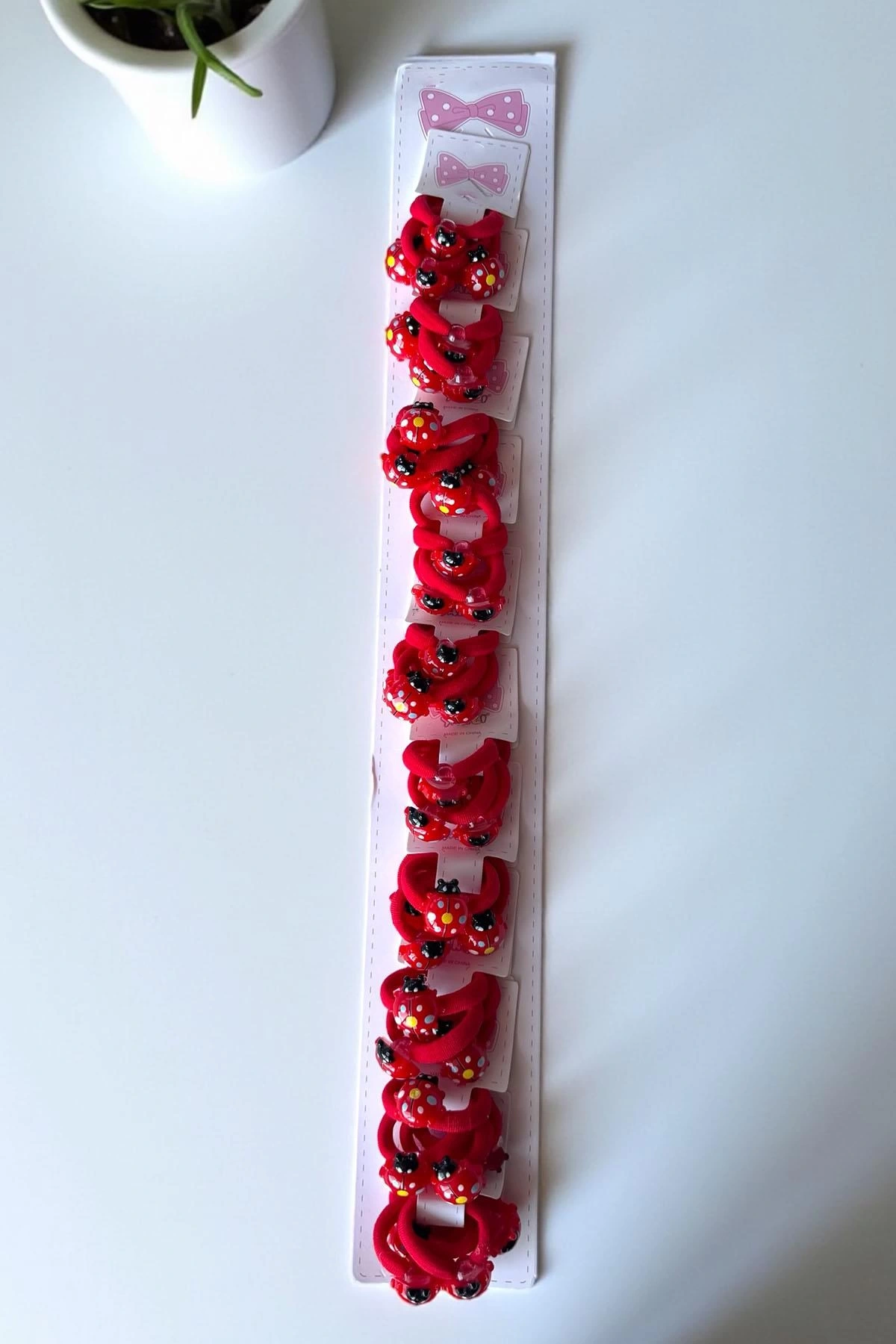 10'lu Kırmızı Renk Uğur Böceği Figürlü Lastik Toka Set