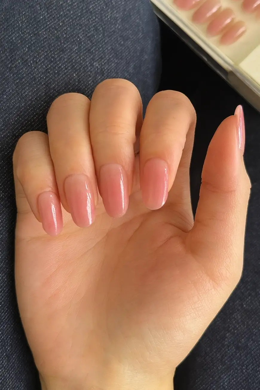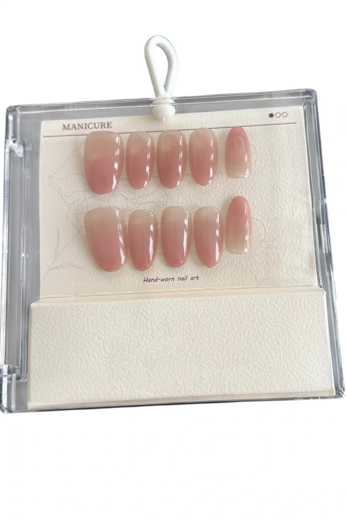 10'lu Pembe Renk Jel Görünümlü Takma Tırnak Set (Yapıştırıcılı)