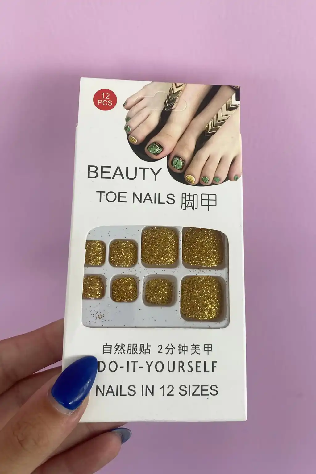 12'li Altın Renk Sim Detaylı Ayak Takma Tırnak Seti