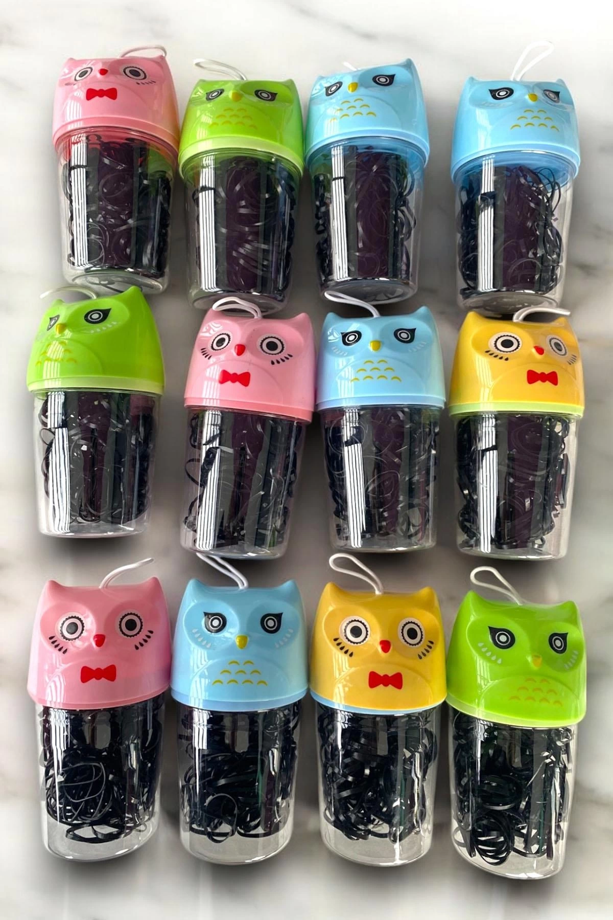 12'li Baykuş Figürlü Perma Lastik Toka