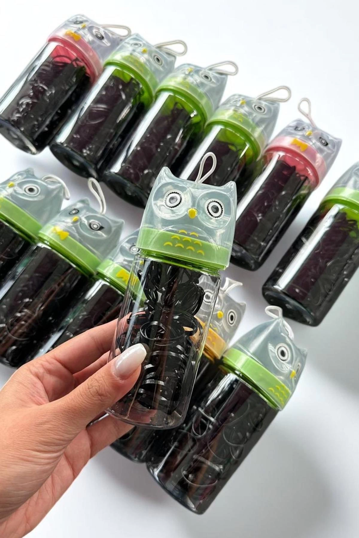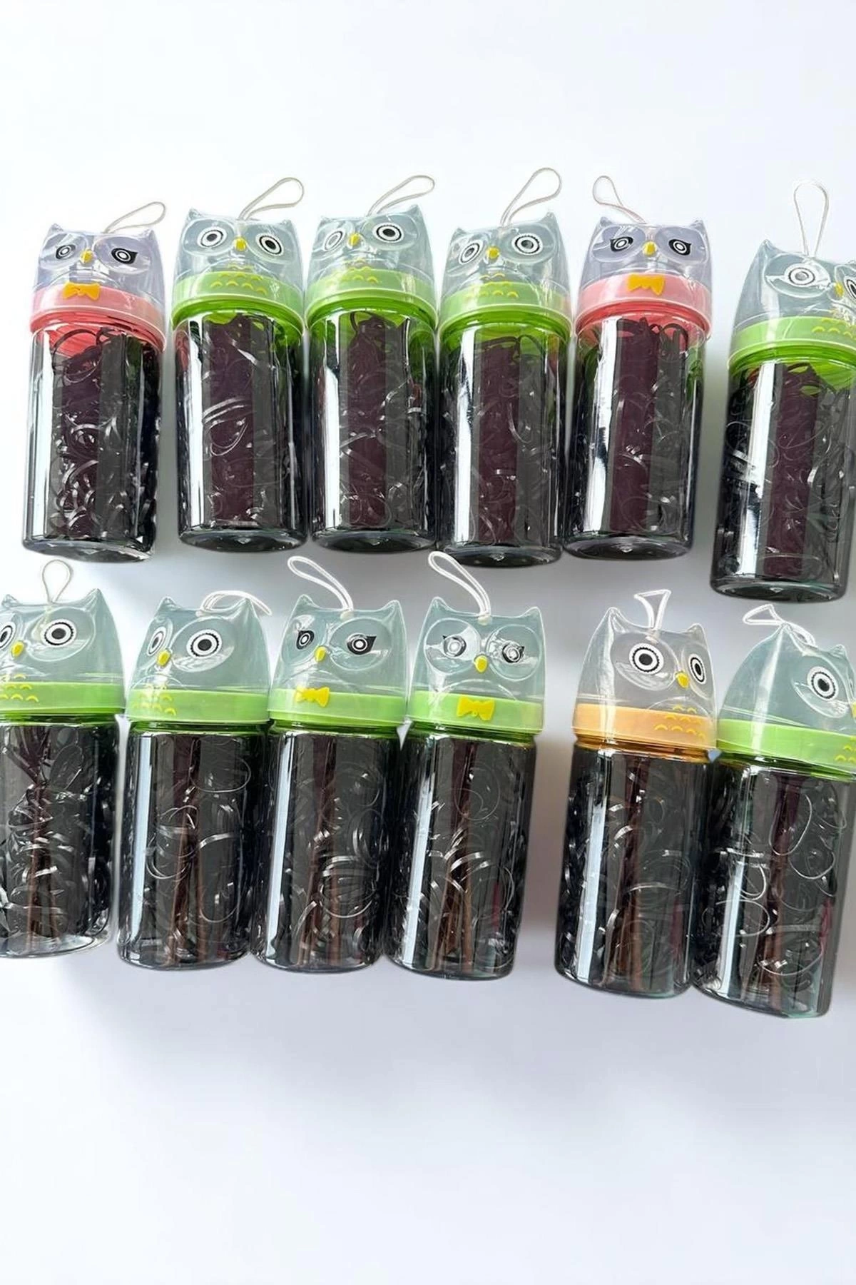 12'li Baykuş Figürlü Siyah Renk Perma Lastik Toka Set