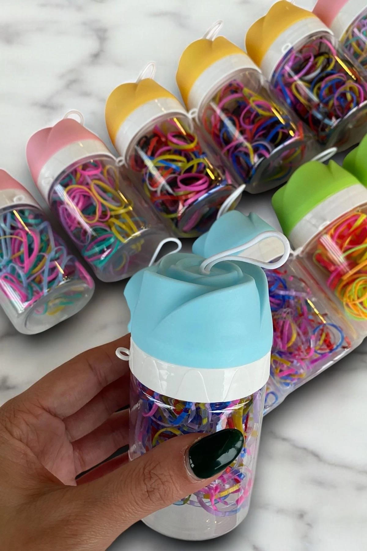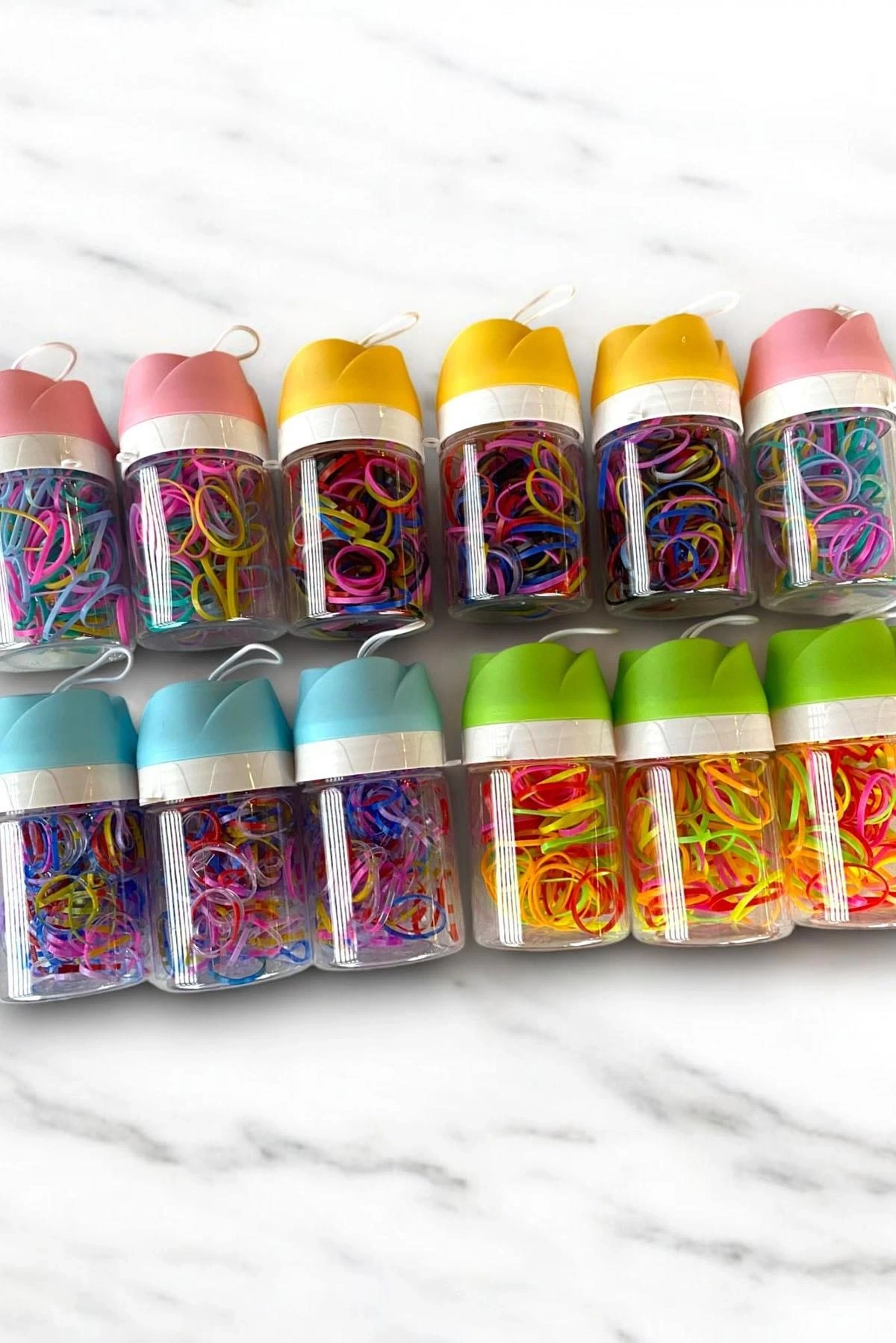 12'li Gül Figürlü Karışık Renk Renk Perma Lastik Toka