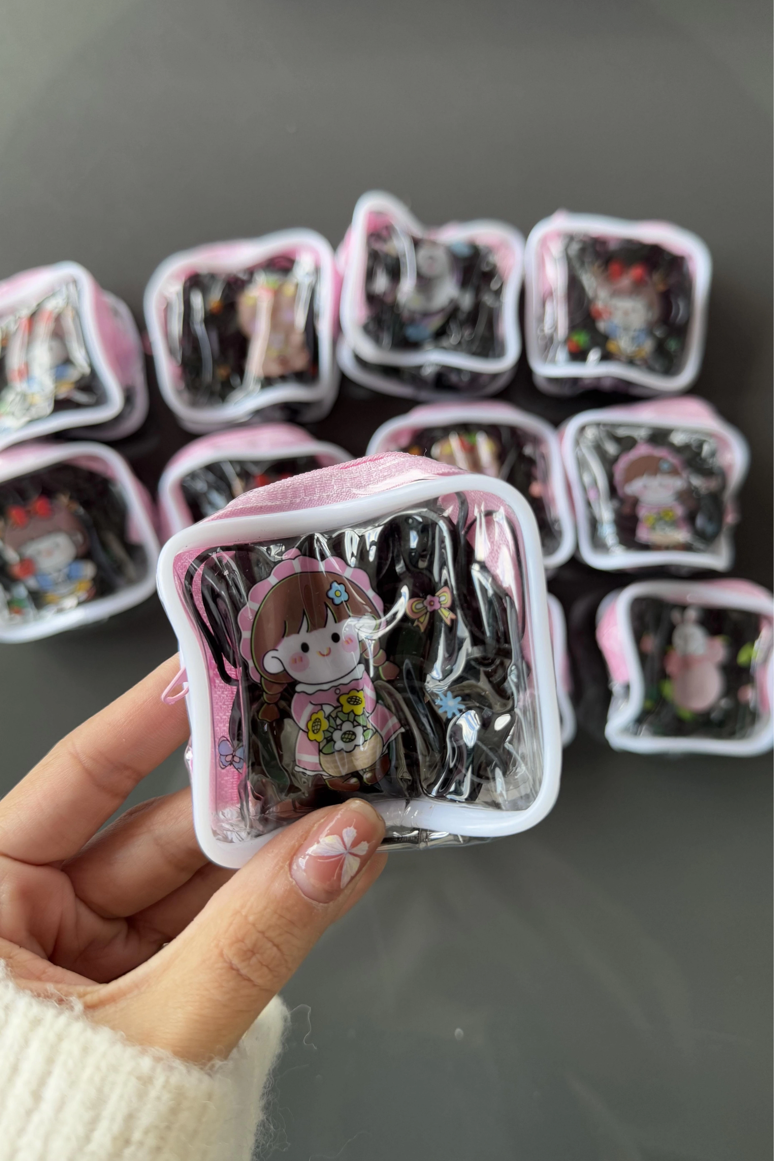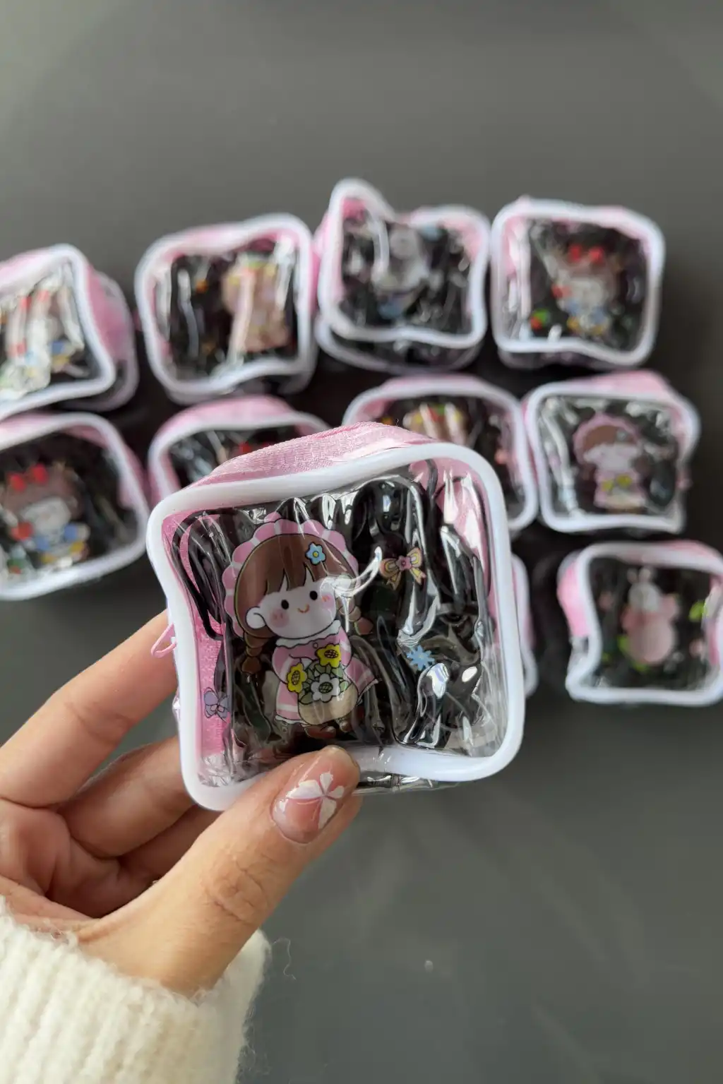 12'li Karışık Figürlü Siyah Renk Perma Lastik Toka Set
