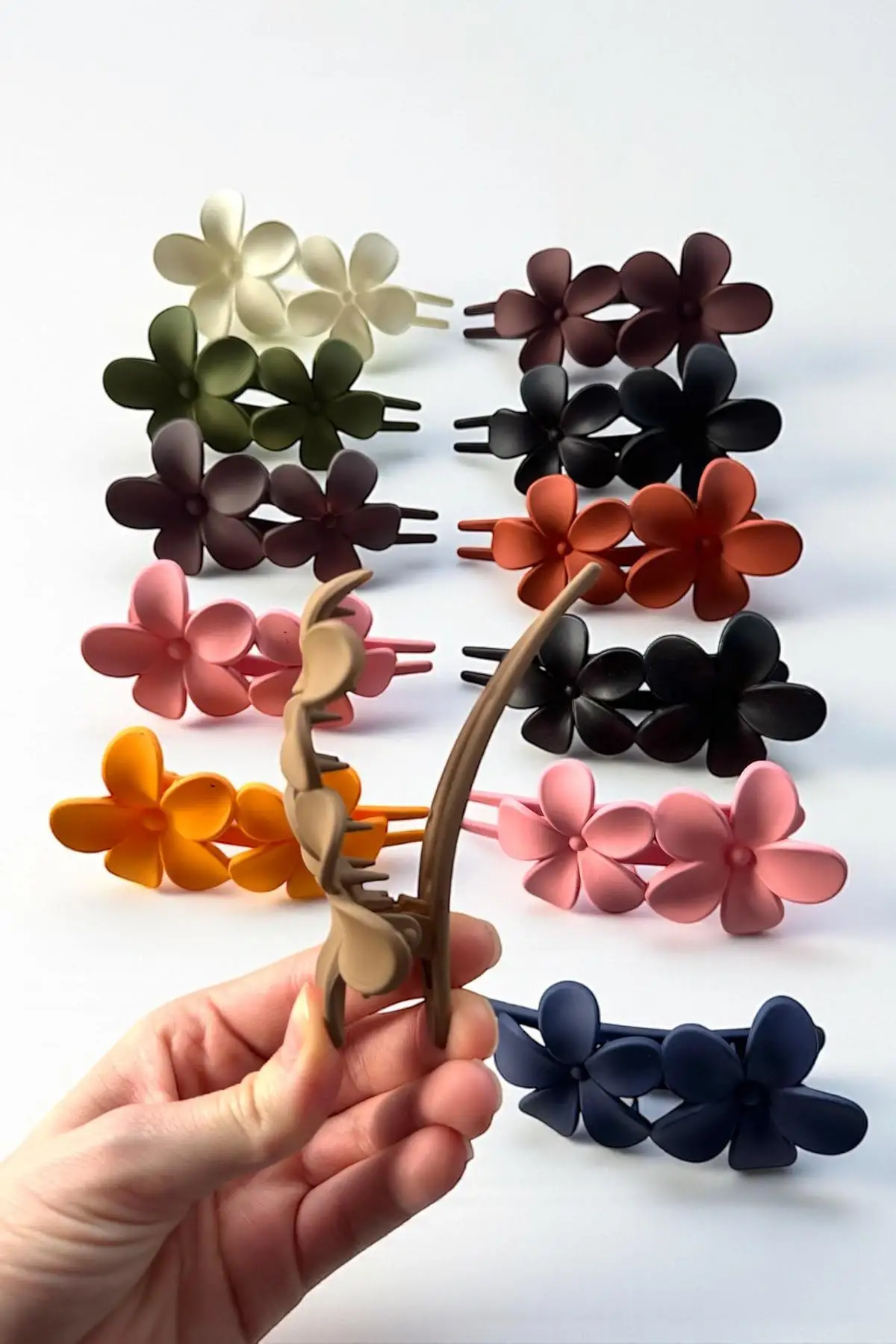 12'li Karışık Renk Çiçek Figürlü Pens Toka Set