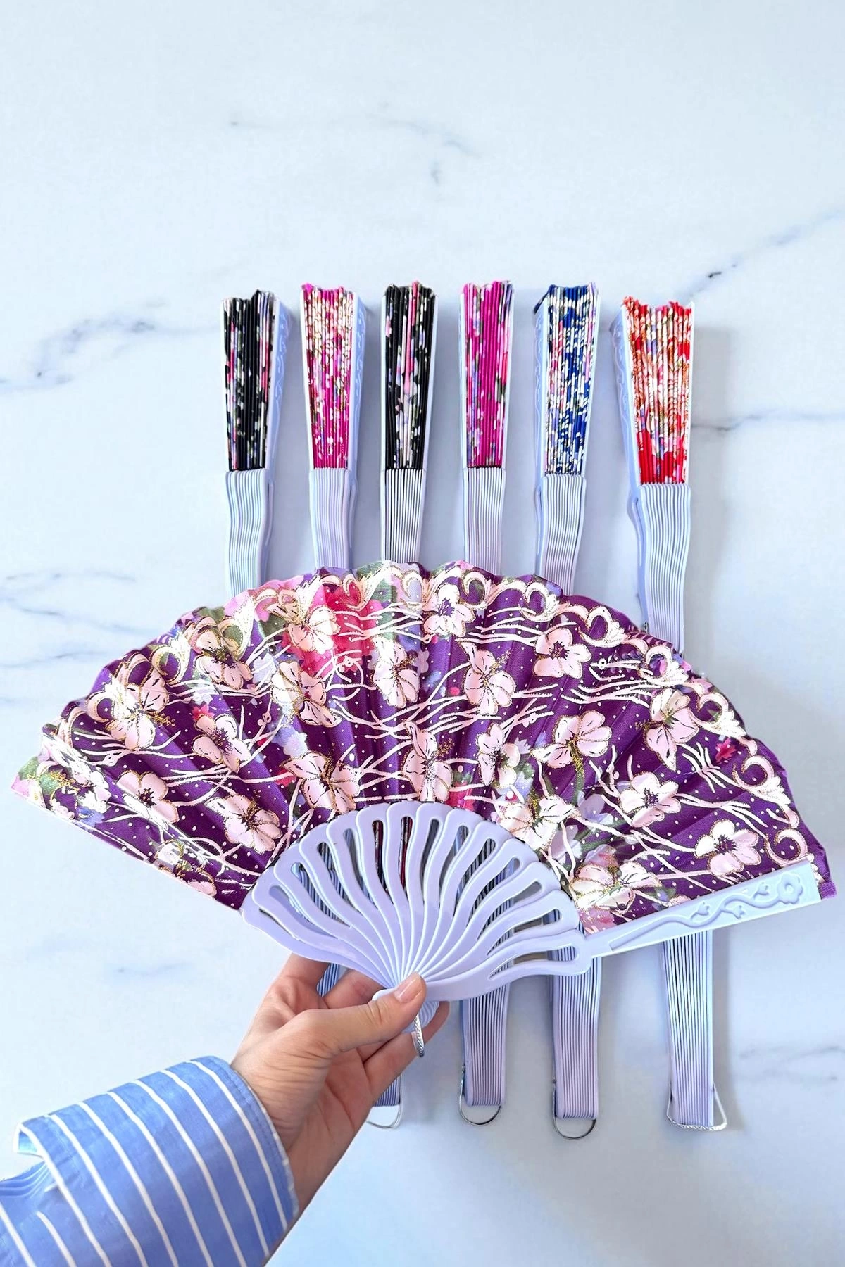 12´li Karışık Renk Çiçek Figürlü Yelpaze