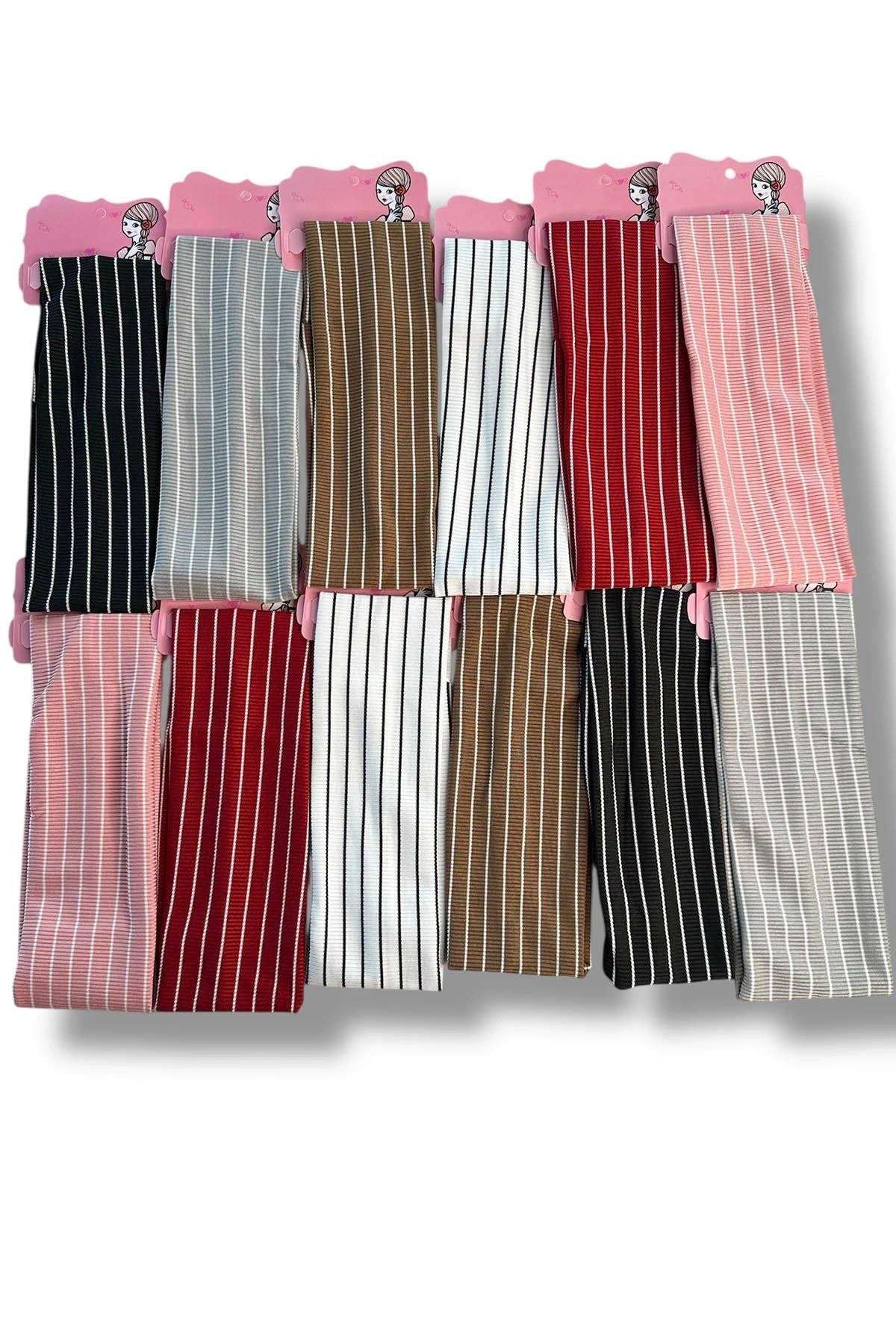 12'li Karışık Renk Çizgi Detaylı Saç Bandı