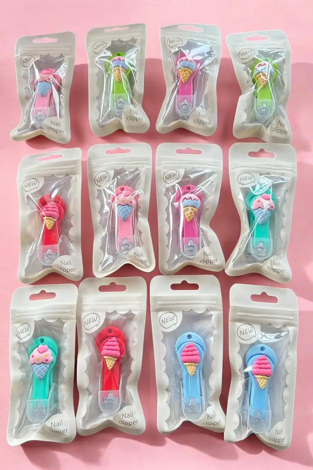 12'li Karışık Renk Dondurma Figürlü Tırnak Makası Set