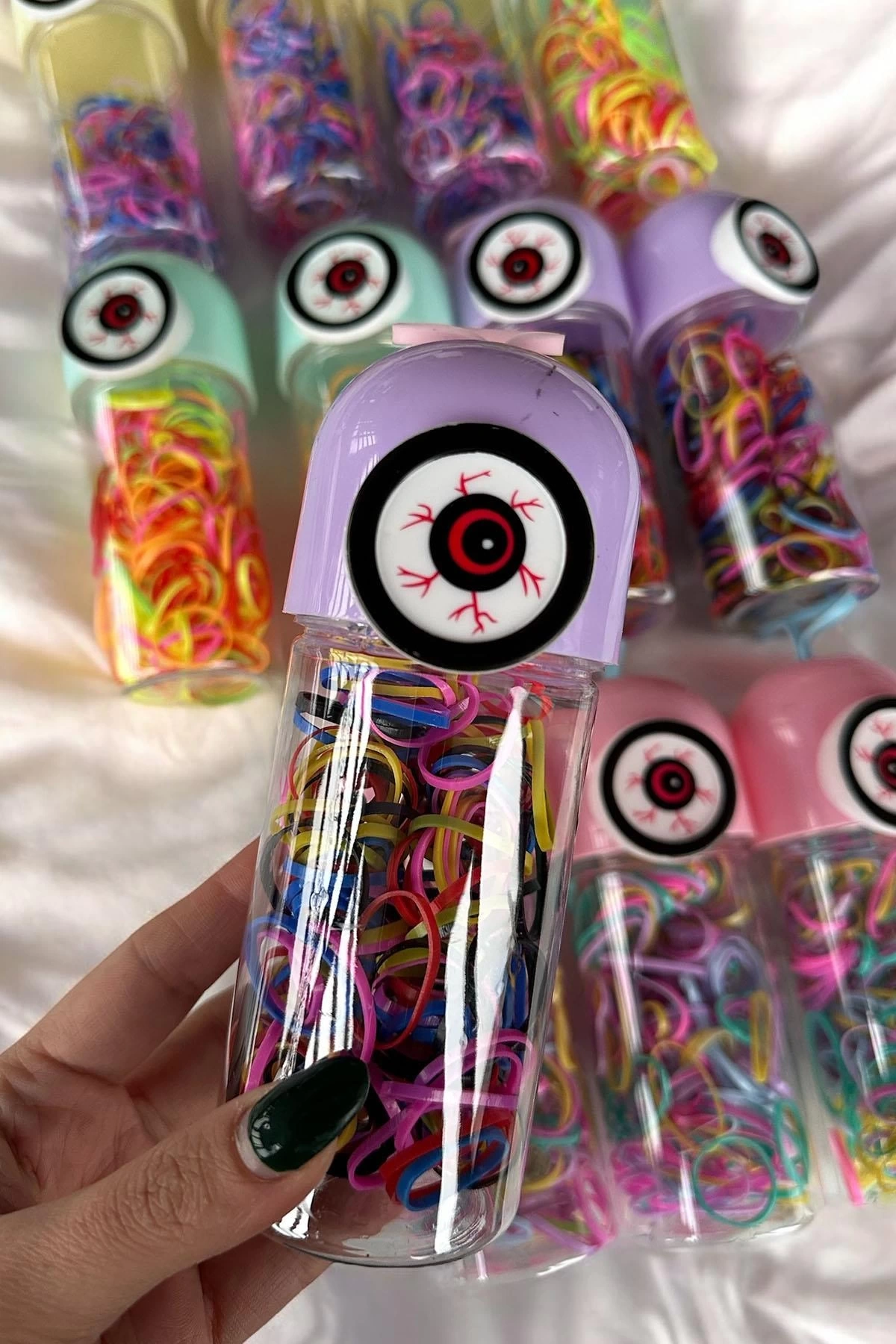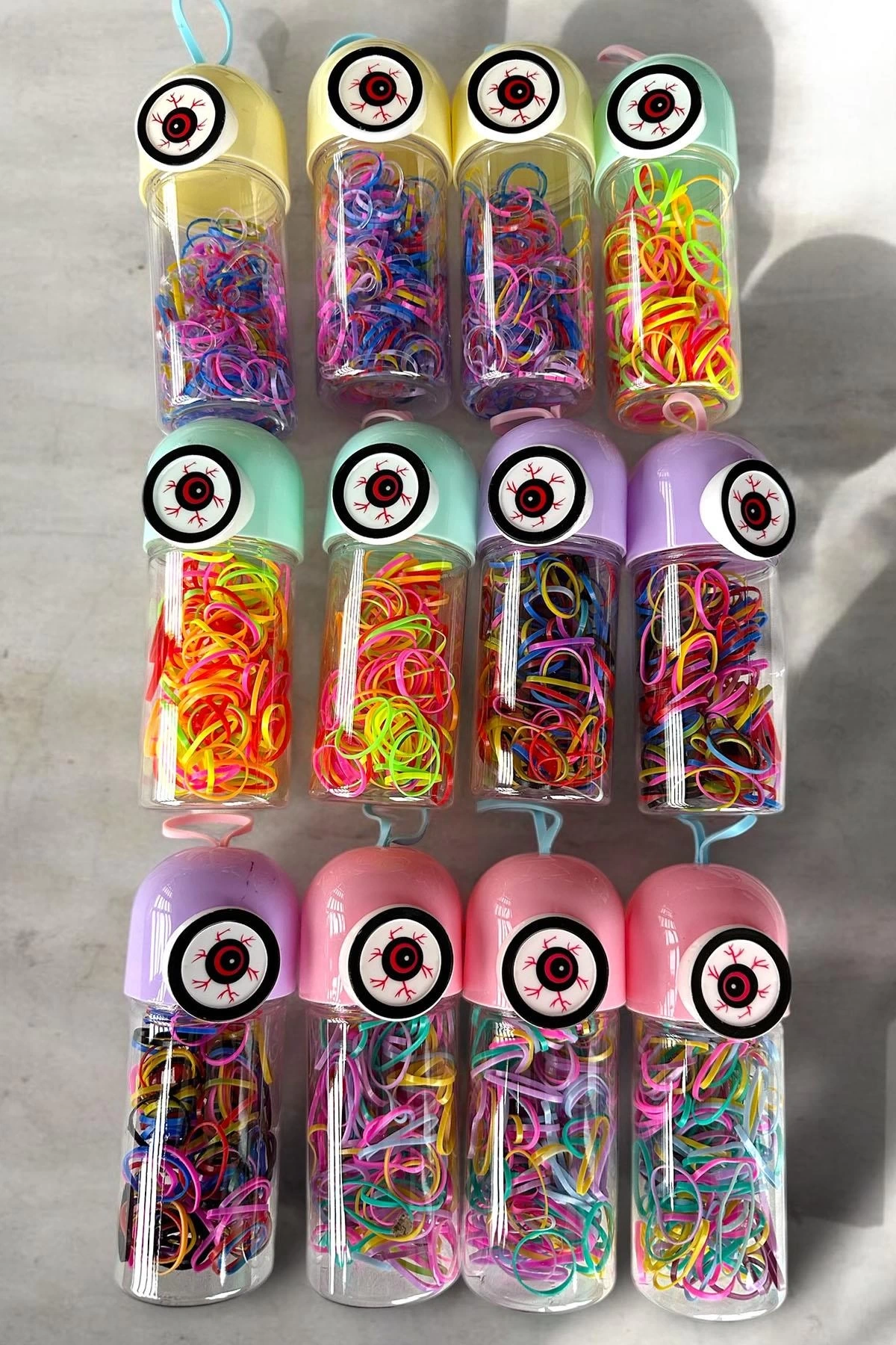 12'li Karışık Renk Göz Figürlü Perma Lastik Toka Set