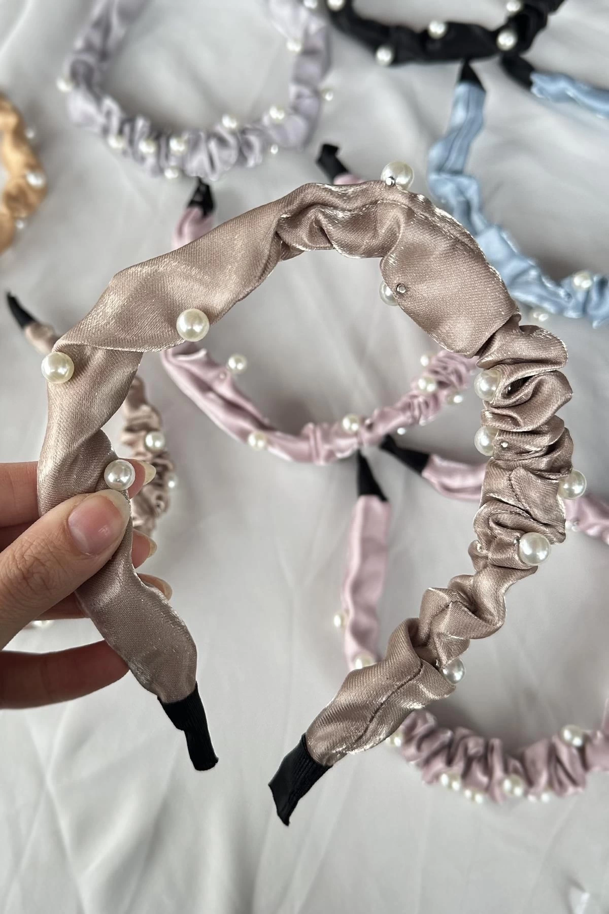 12'li Karışık Renk İnci Detaylı Büzgü Detaylı Taç
