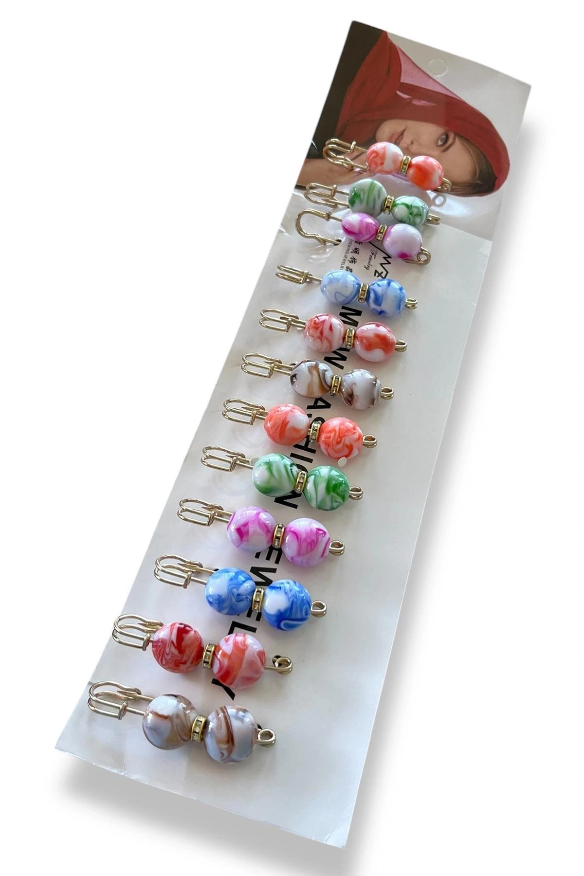 12'li Karışık Renk İnci Detaylı Eşarp İğnesi /Broş