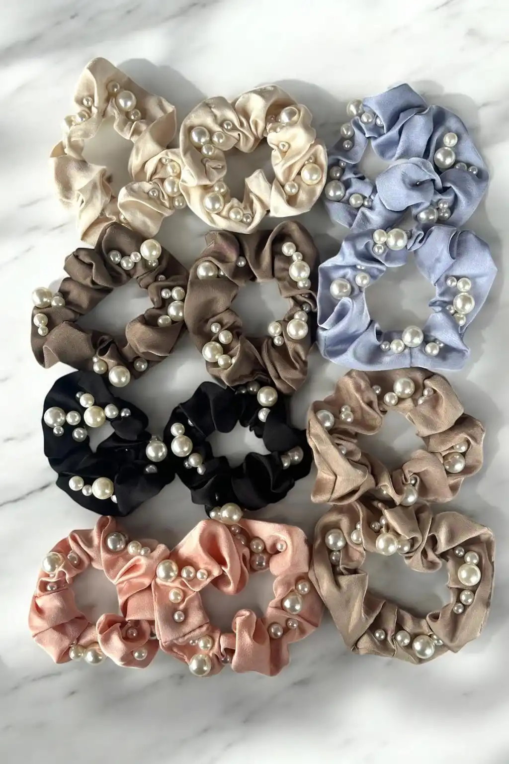 12'li Karışık Renk İnci Detaylı Simit Toka Set