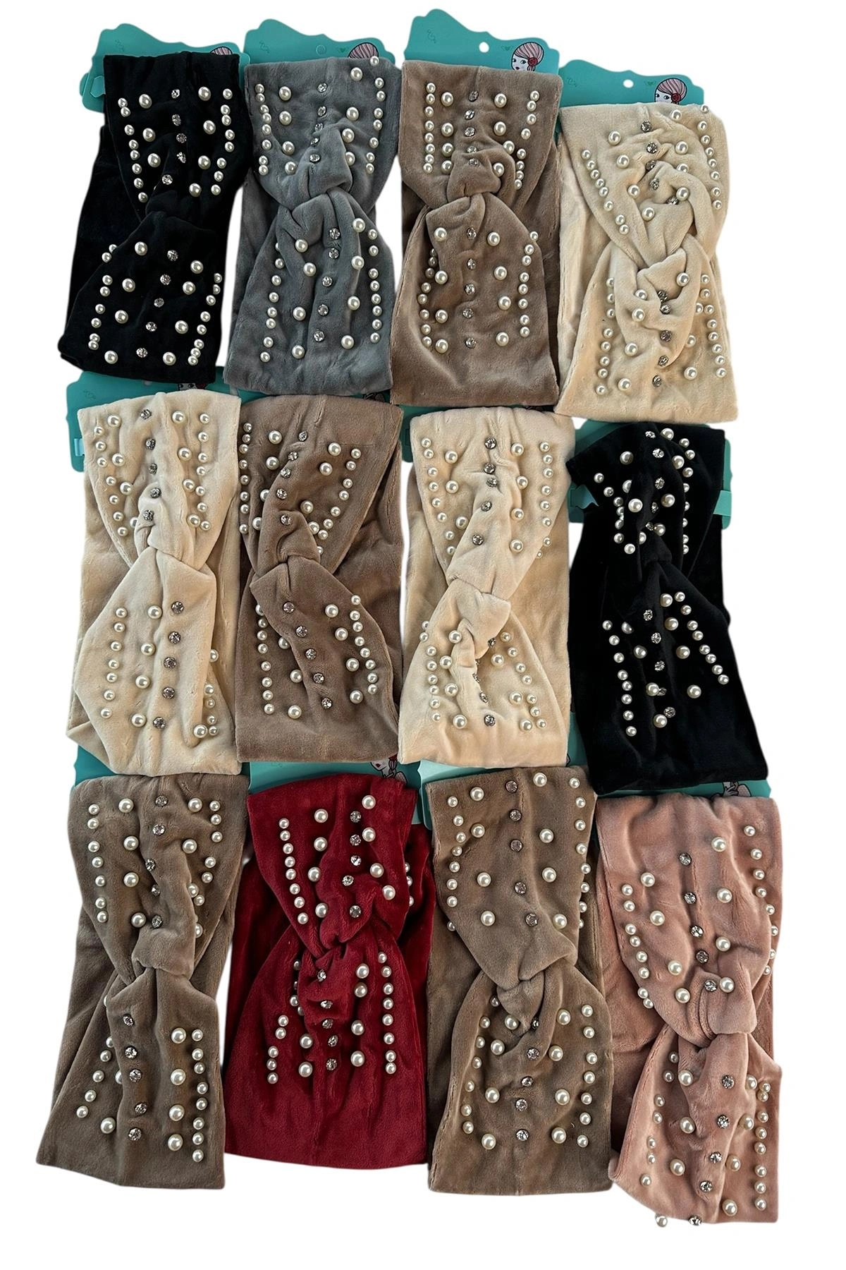12'li Karışık Renk İnci Ve Taş Detaylı Saç Bandı