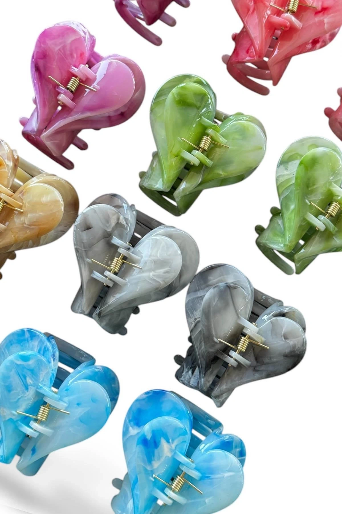 12'li Karışık Renk Kalp Figürlü Kemik Mandal Toka Set