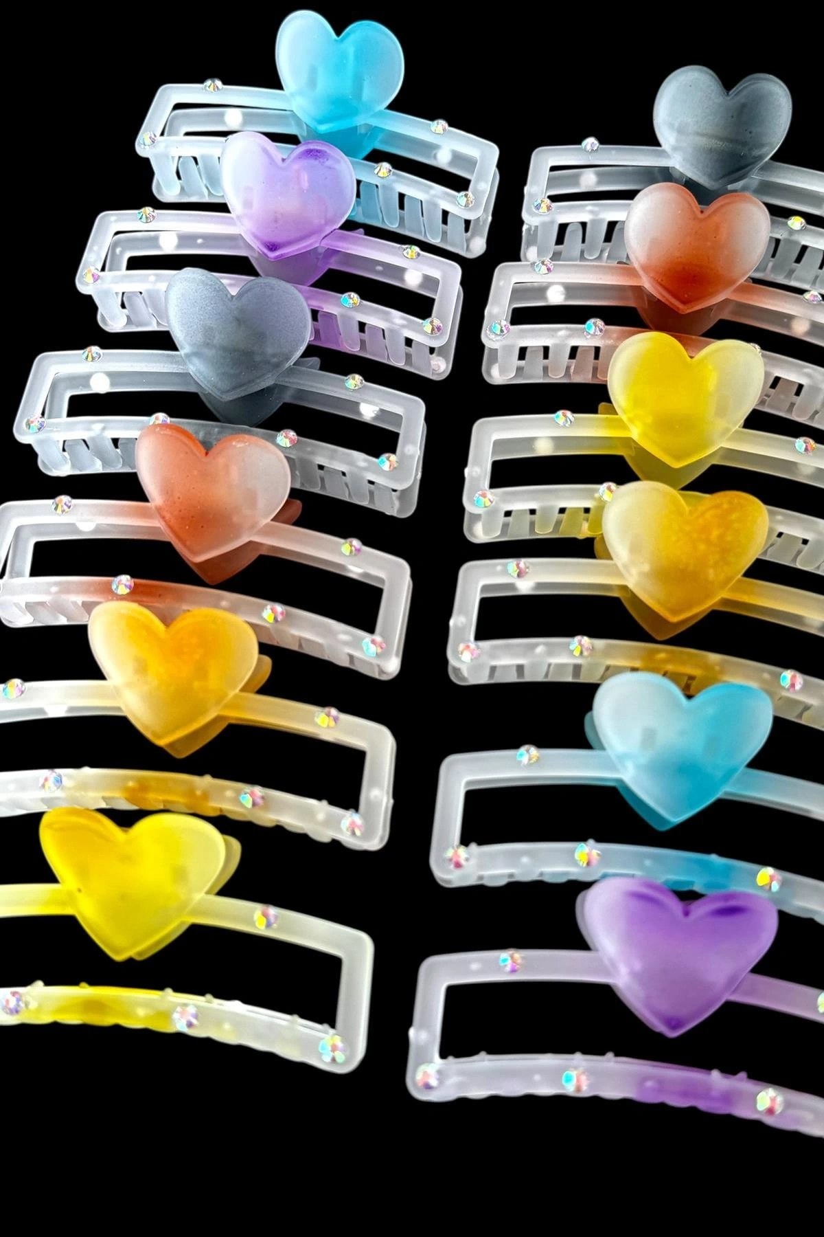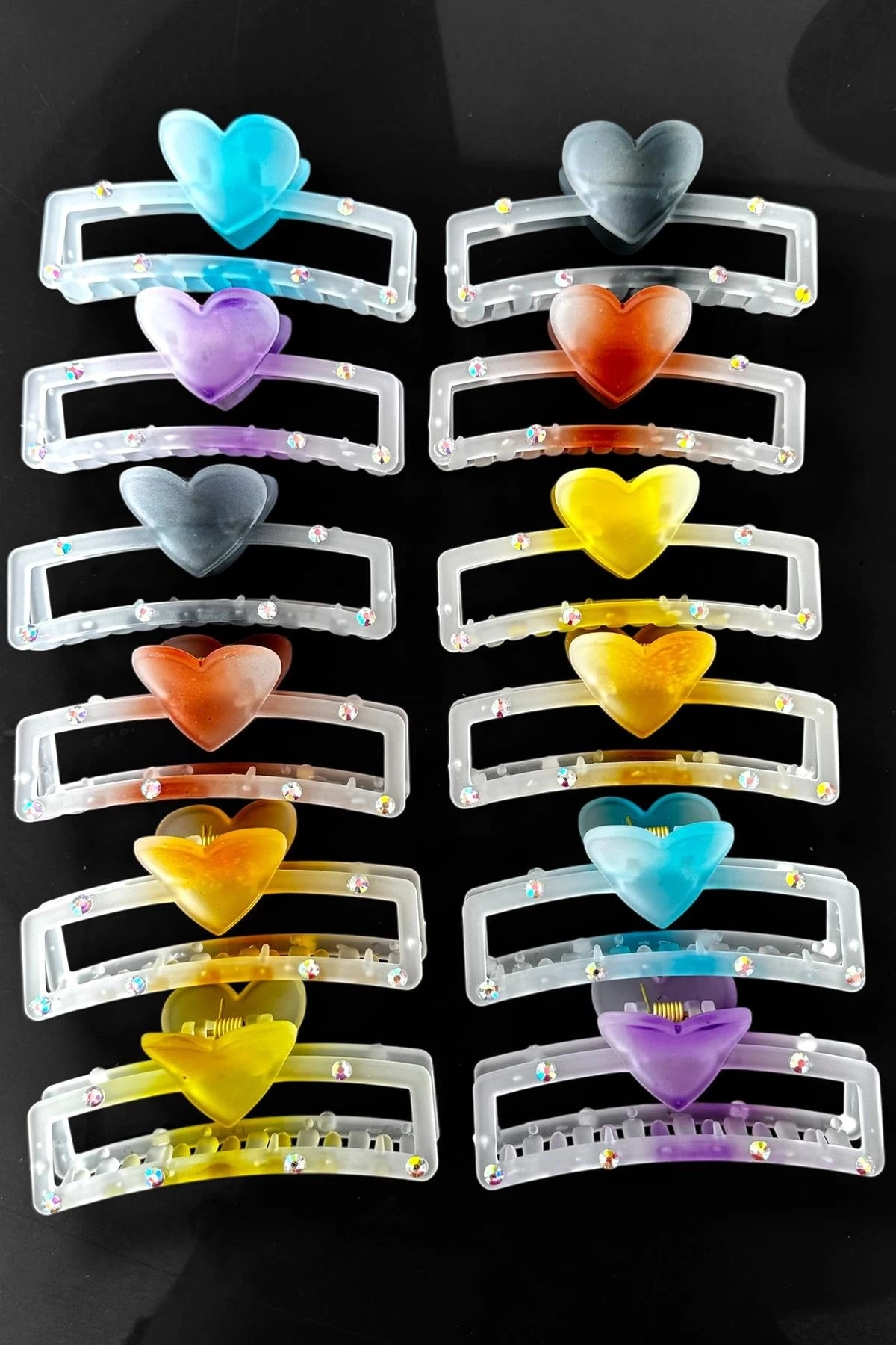 12'li Karışık Renk Kalp Figürlü Mandal Toka Set