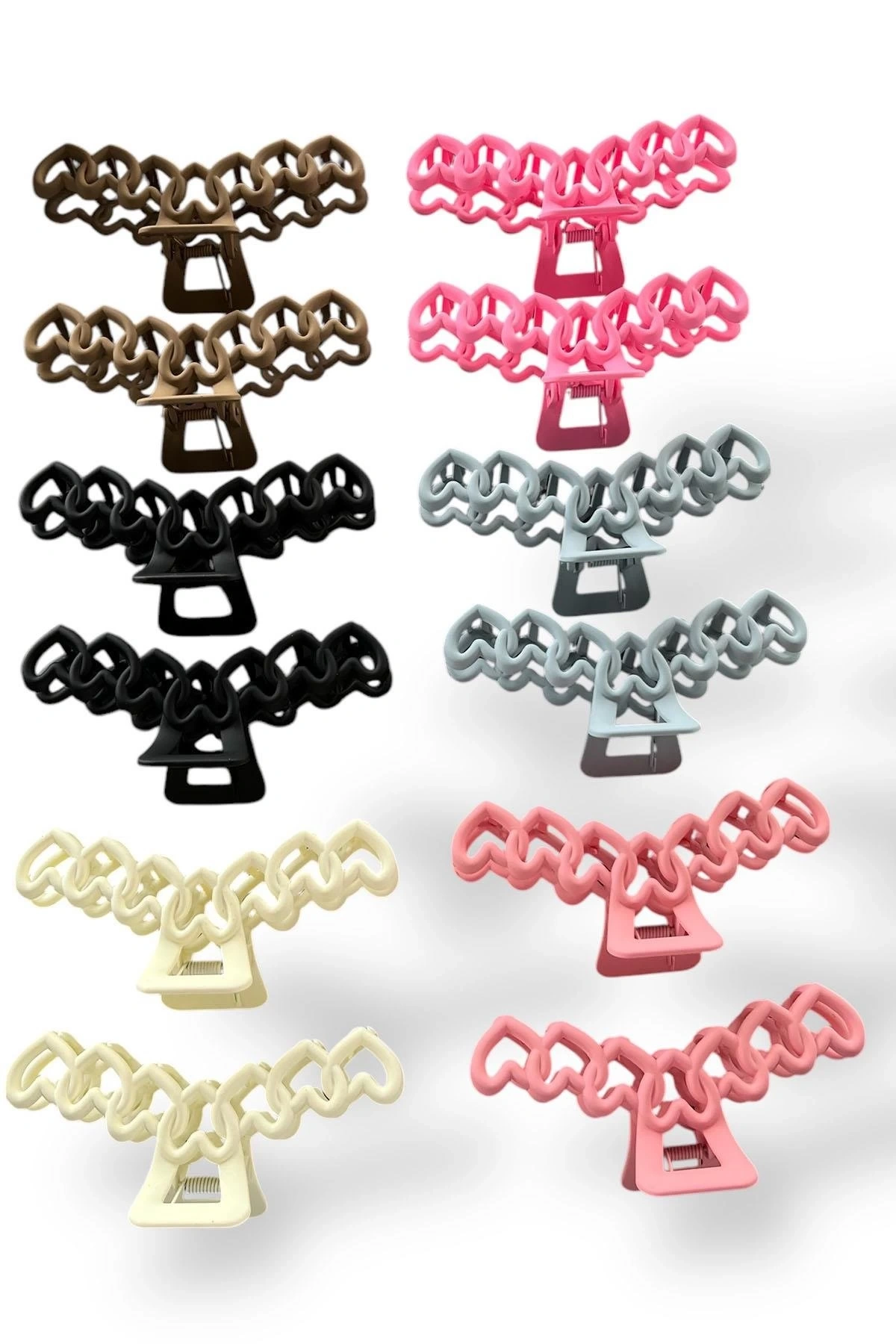12'li Karışık Renk Kalp Figürlü Mandal Toka Set