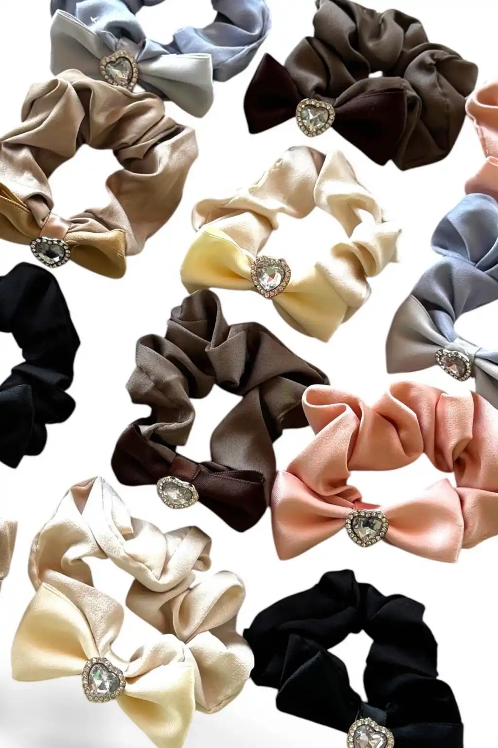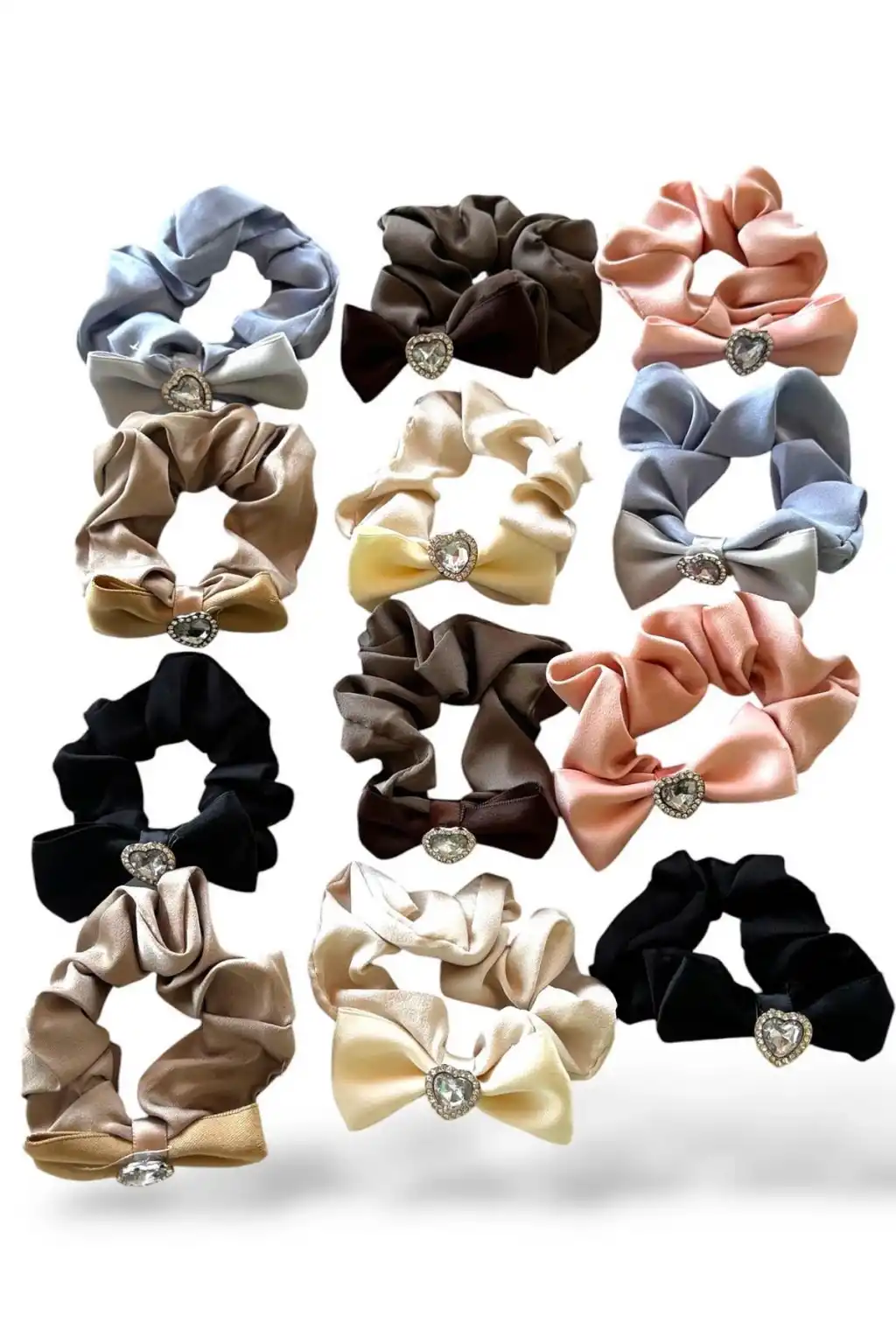 12'li Karışık Renk Kalp Figürlü Taş Detaylı Simit Toka Set