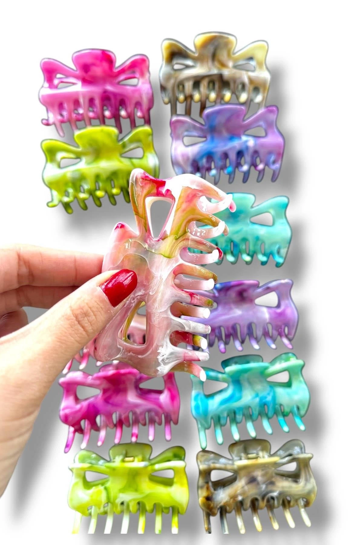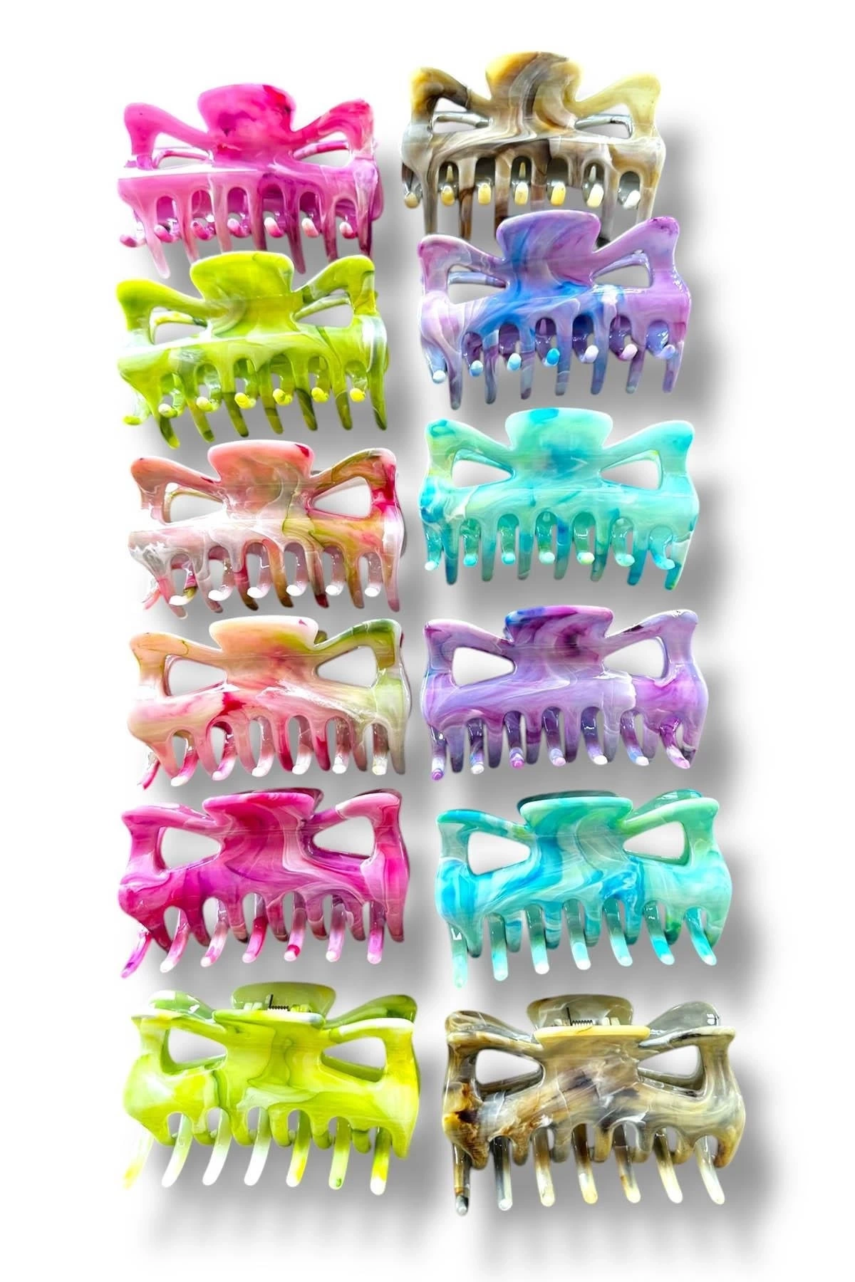 12'li Karışık Renk Kelebek Figürlü Mermer Desenli Kemik Mandal Toka Set