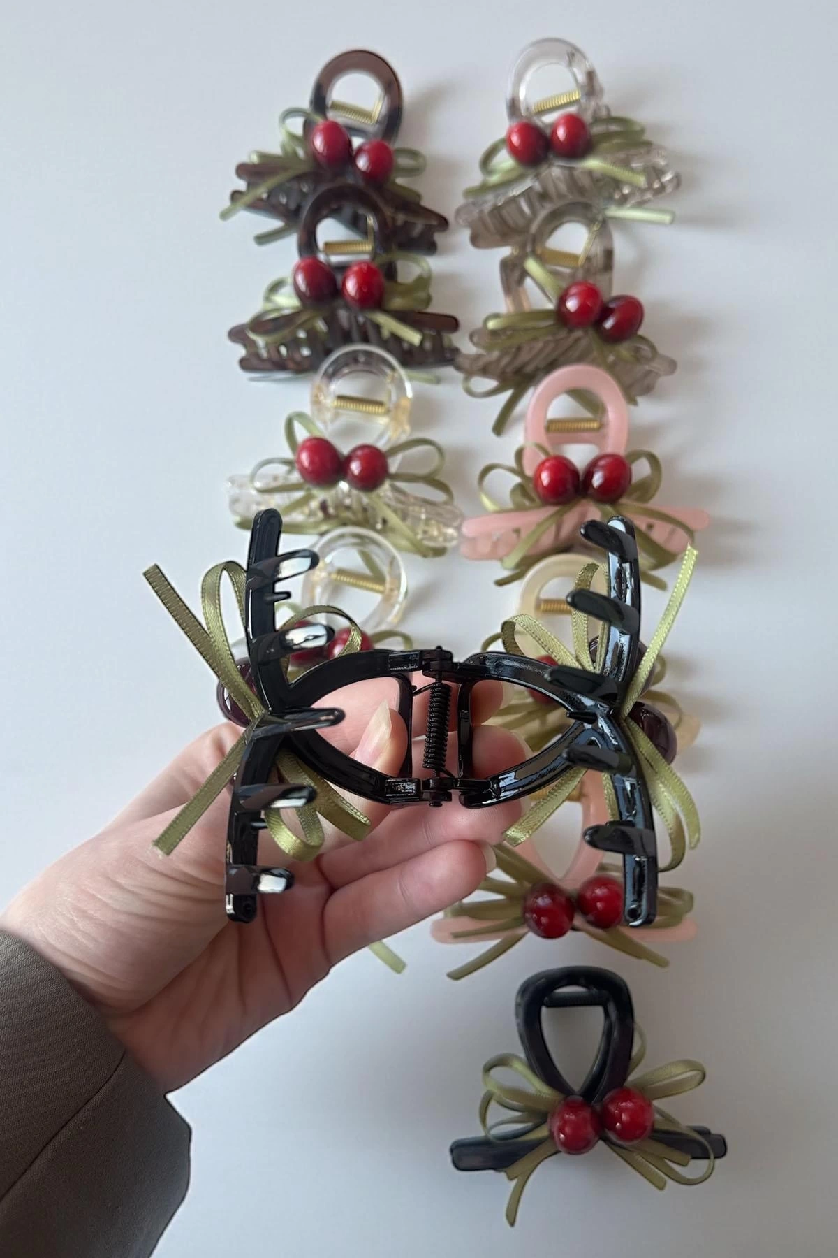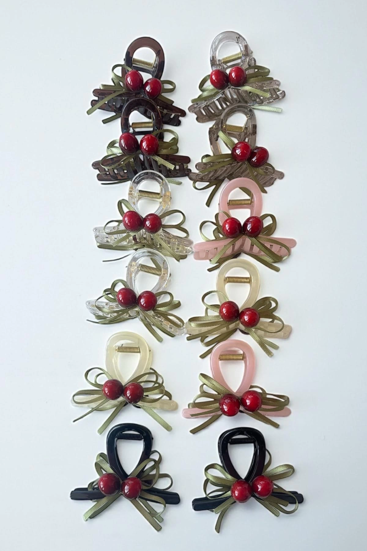 12'li Karışık Renk Kiraz Figürlü Mandal Toka Set