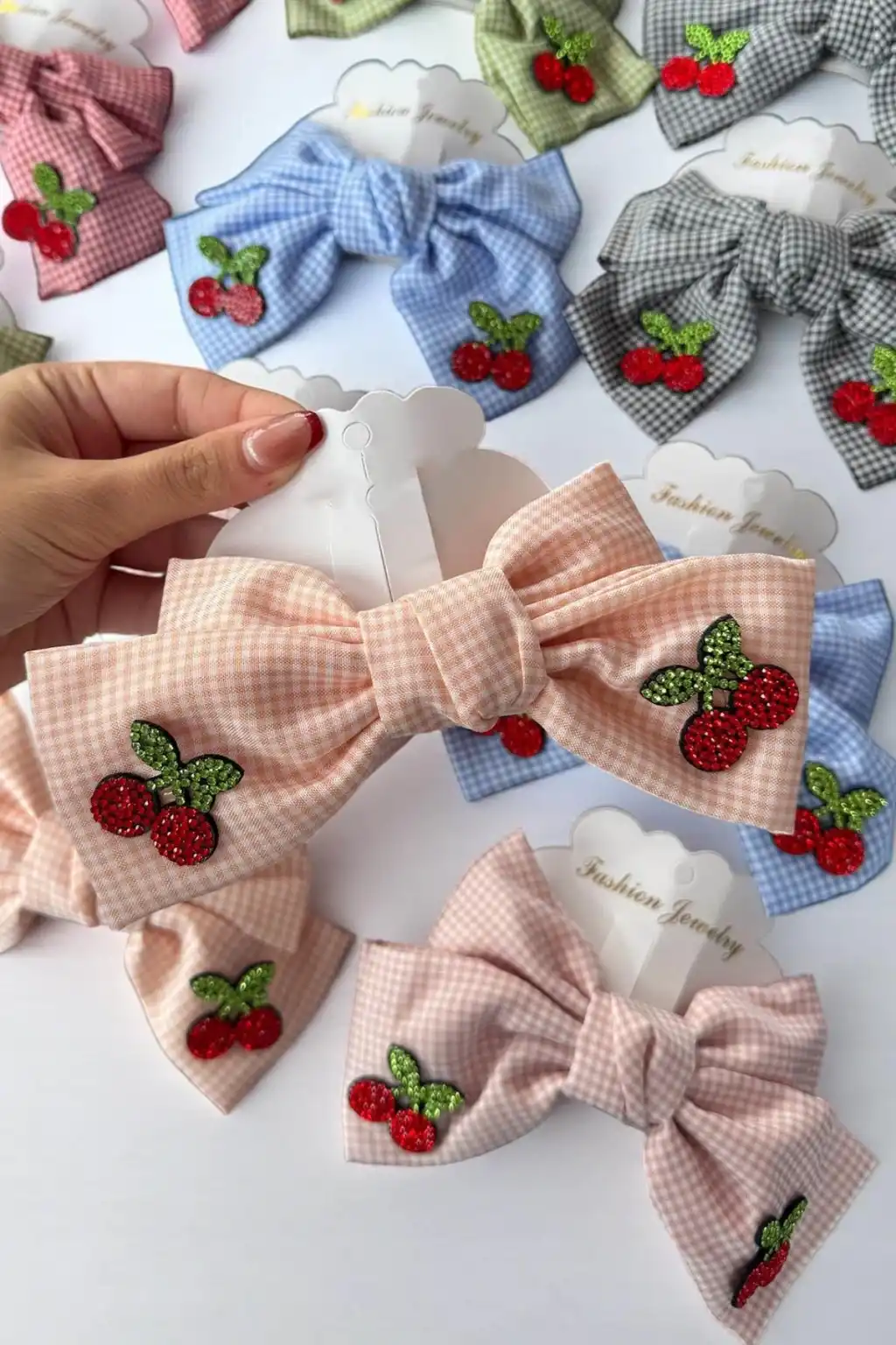 12'li Karışık Renk Kiraz Figürlü Otomat Toka Set