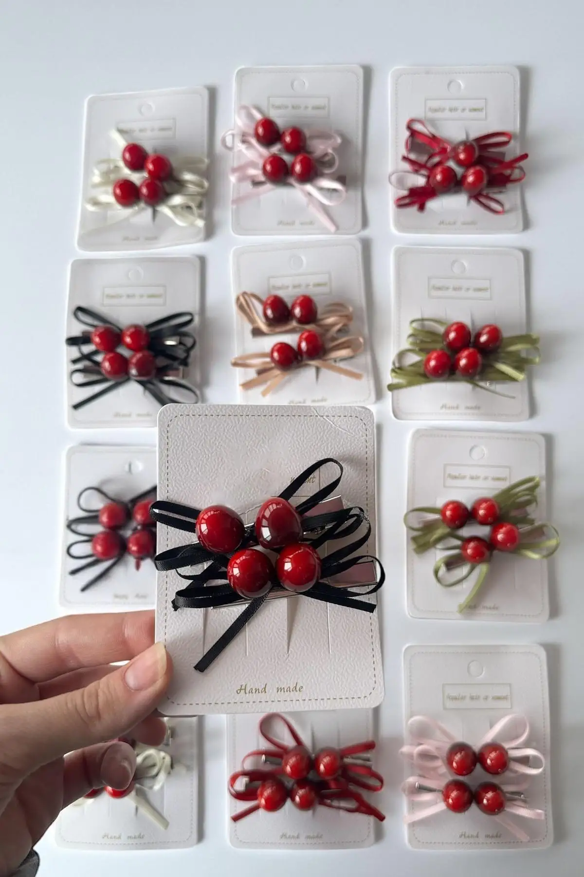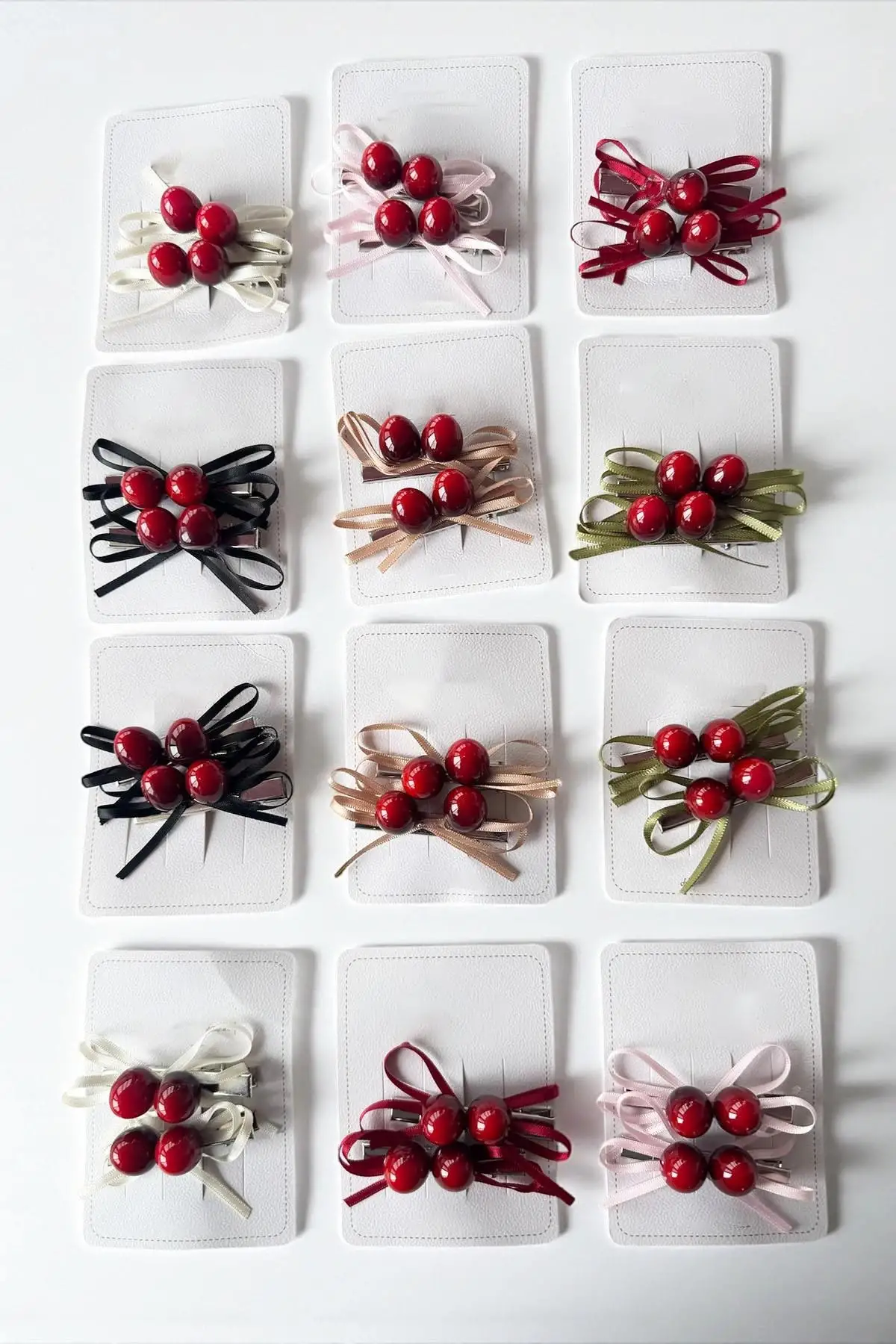 12'li Karışık Renk Kiraz Figürlü Yan Toka Set