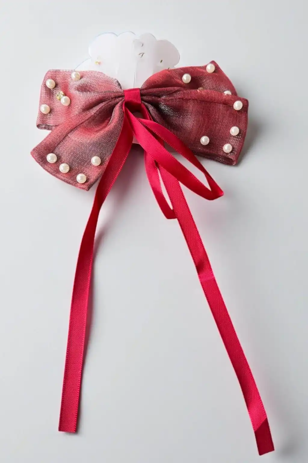 Kırmızı Renk Kurdele Figürlü Taş Detaylı Otomat Toka