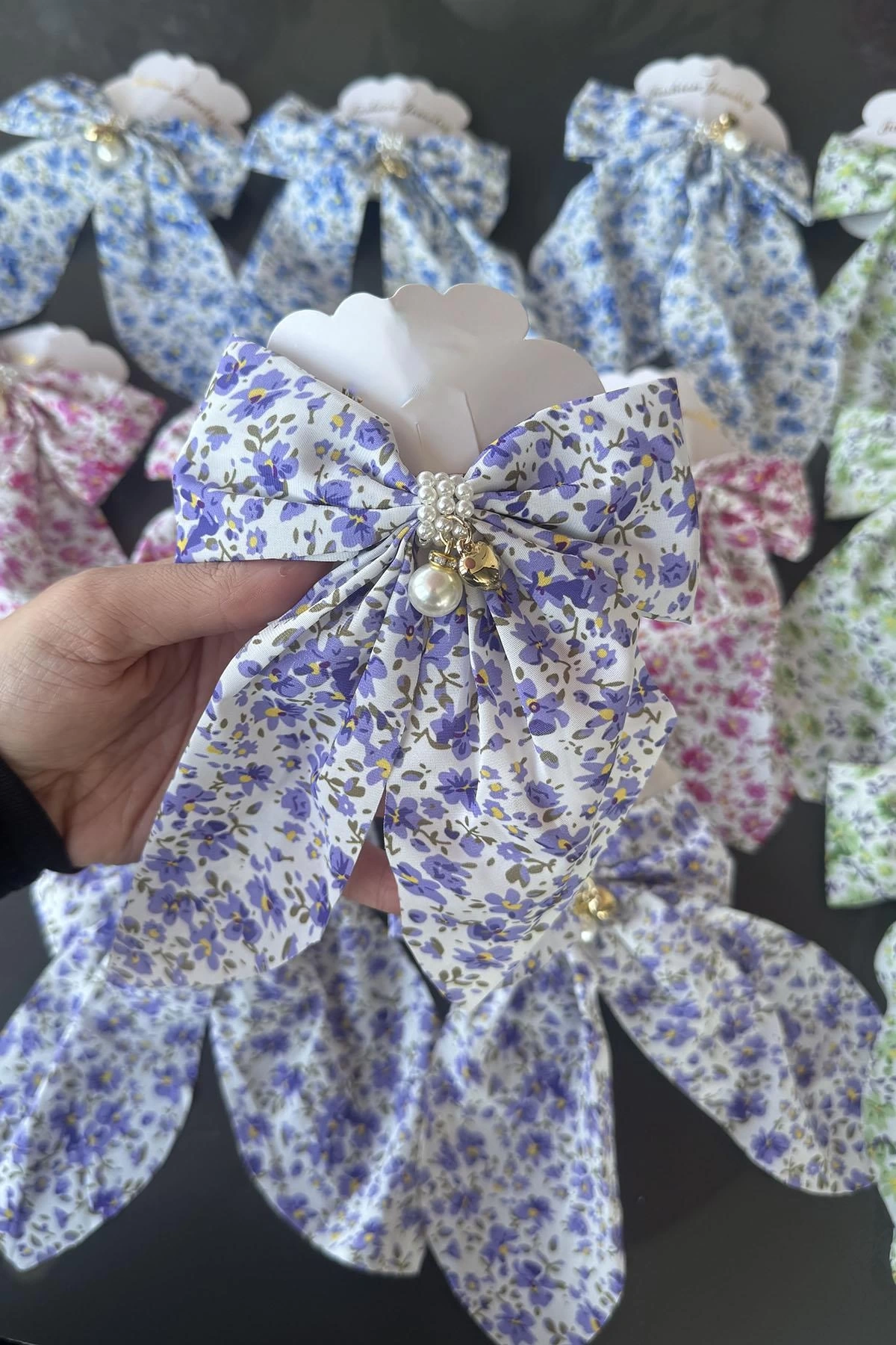 12'li Karışık Renk Kurdele Figürlü İnci Detaylı Otomat Toka Set