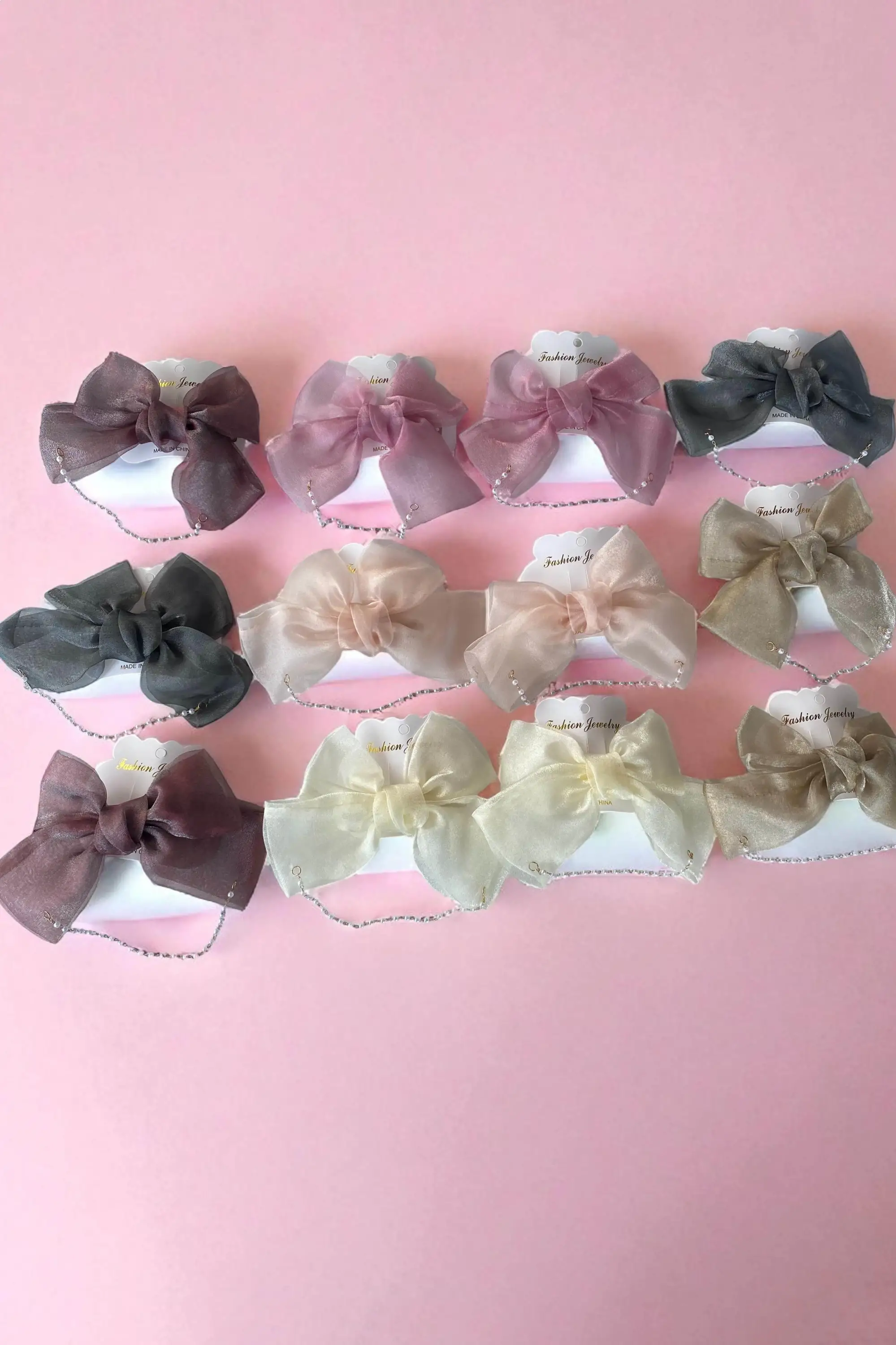 12'li Karışık Renk Kurdele Figürlü İnci Detaylı Otomat Toka Set