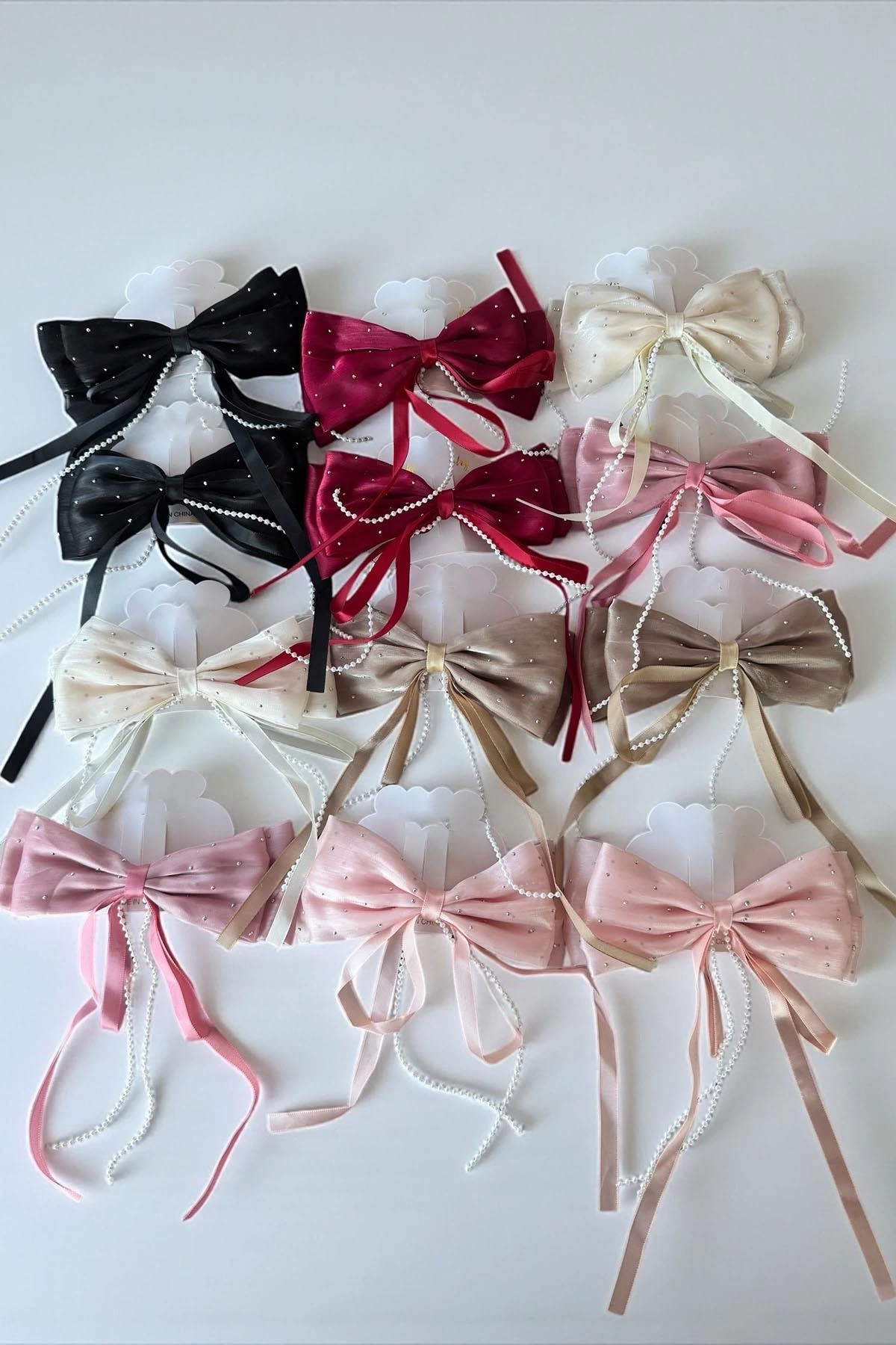 12'li Karışık Renk Kurdele Figürlü Taş Ve İnci Detaylı Otomat Toka Set