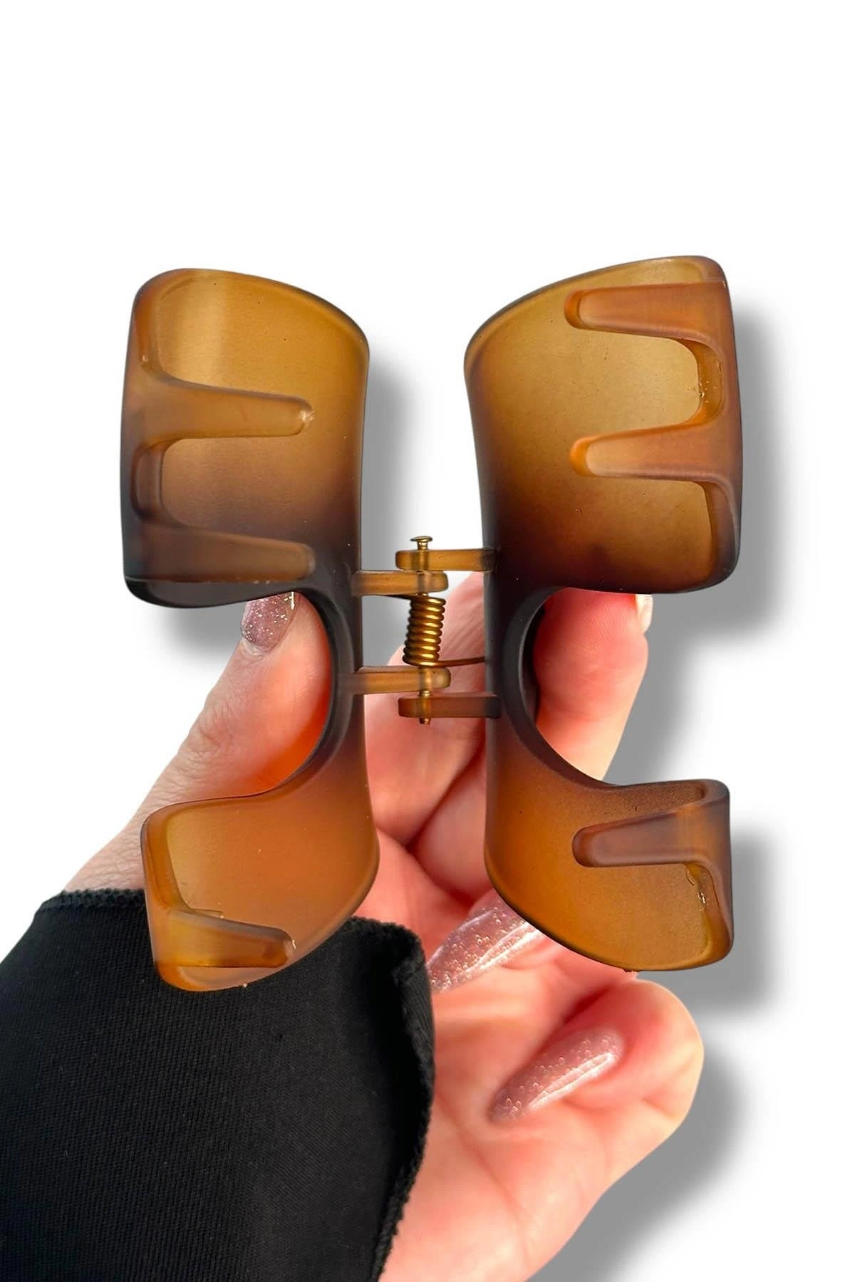 Kahverengi Dağınık Topuz Efektli Saç Eklentisi Kelebek Figürlü Mandal Toka