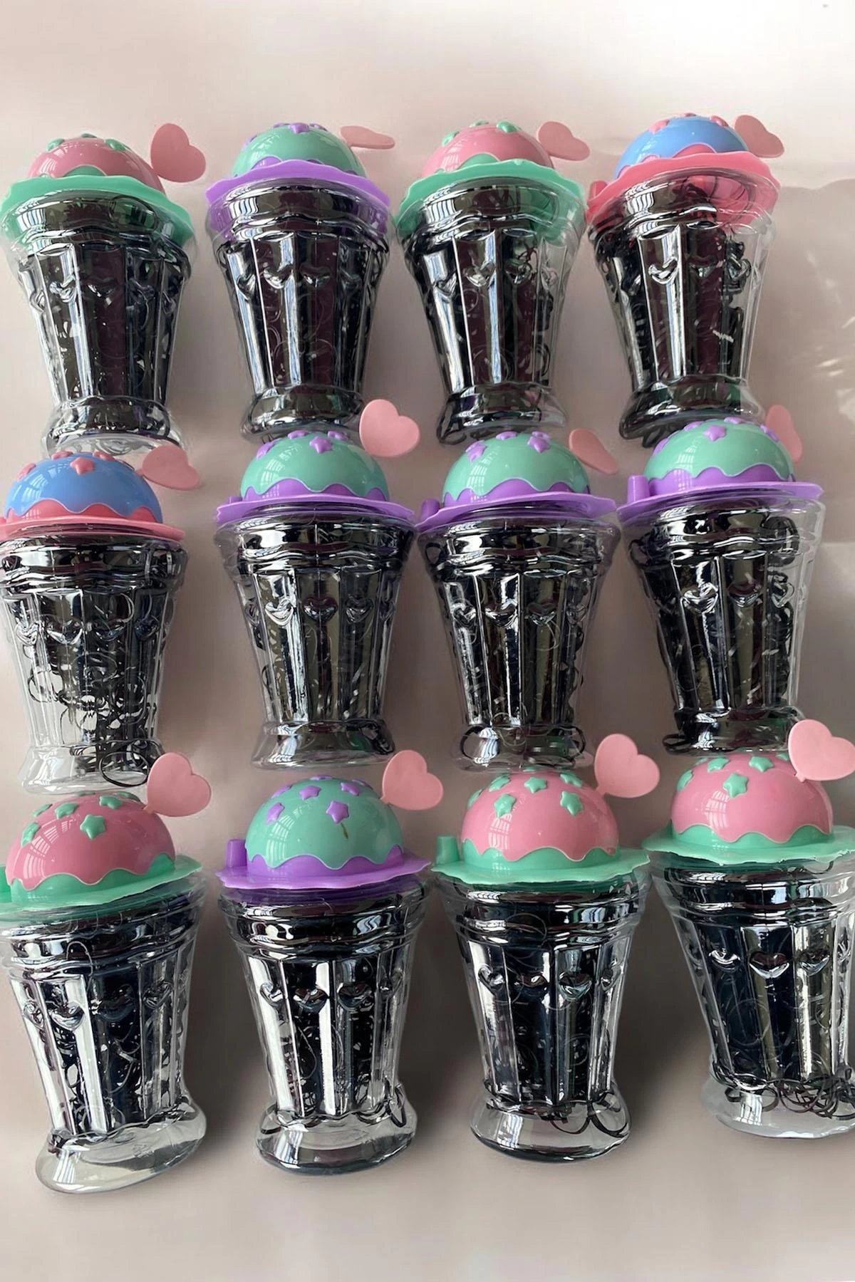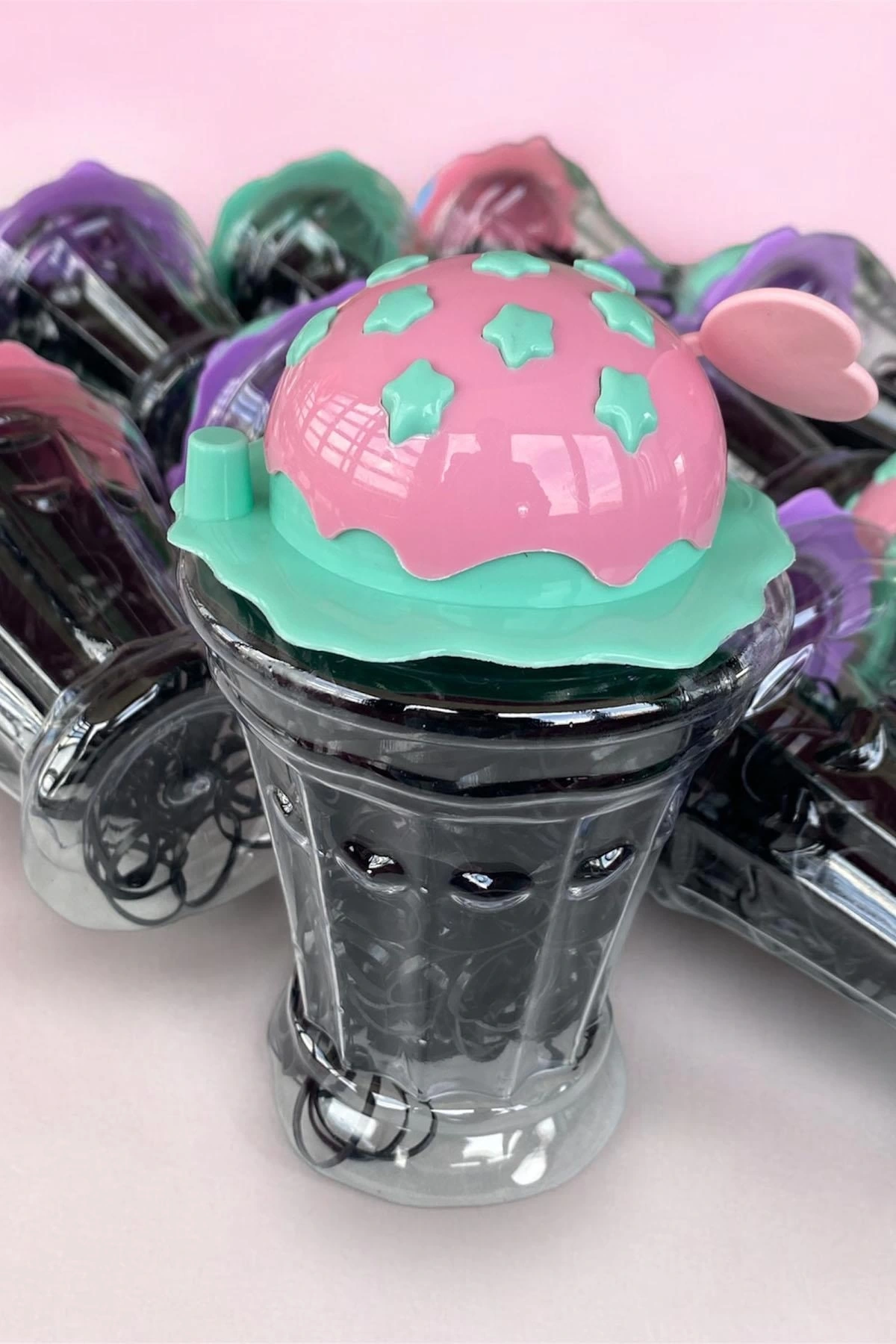 12'li Karışık Renk Mılkshake Figürlü Lastik Toka Set