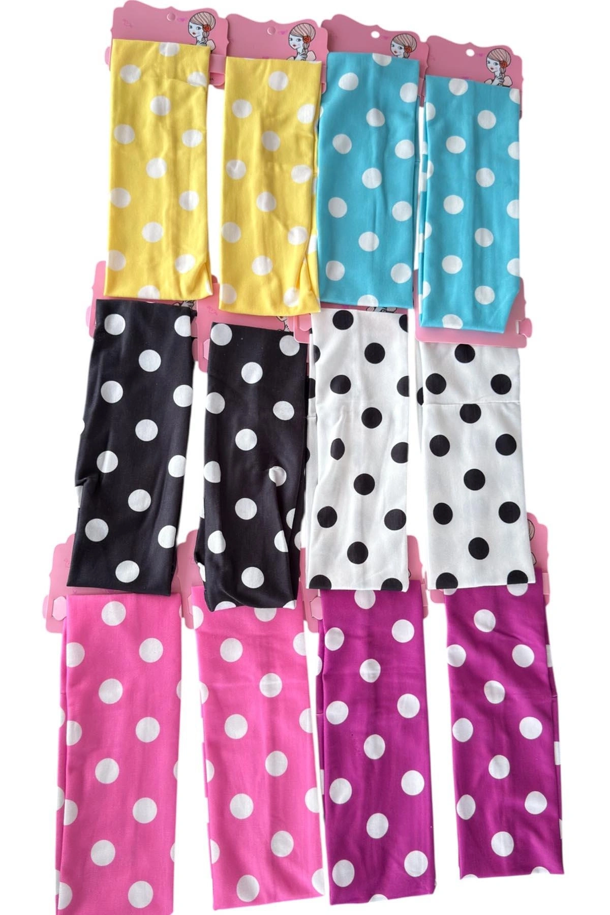 12'li Karışık Renk Puantiyeli Saç Bandı