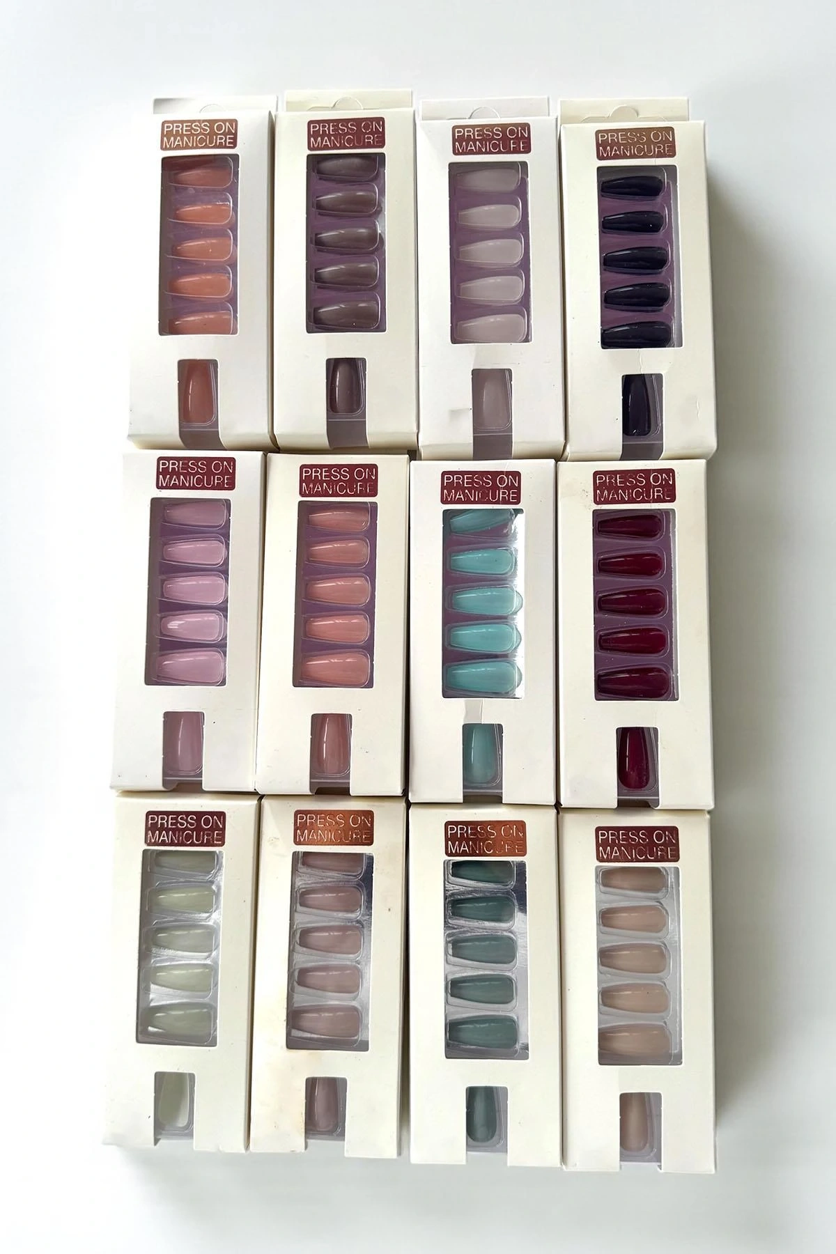 Zarif ve kendinden cilalı takma tırnaklar, etkileyici bir görünüm sağlar.