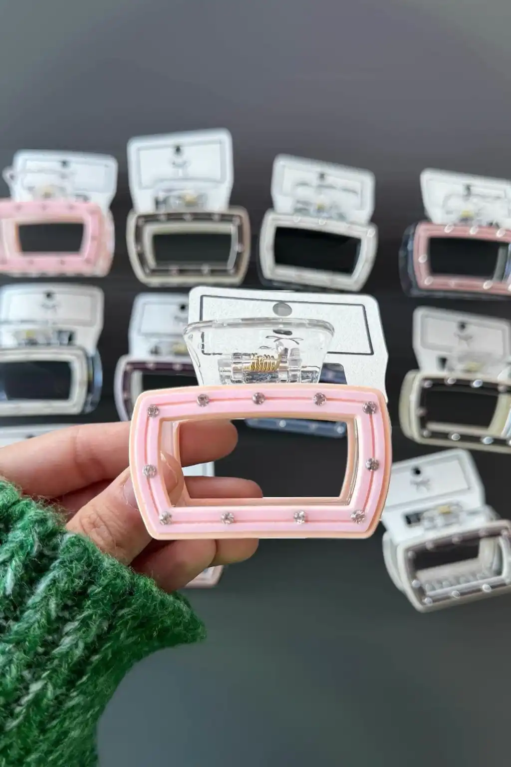 12'li Karışık Renk Taş Detaylı Mandal Toka Set