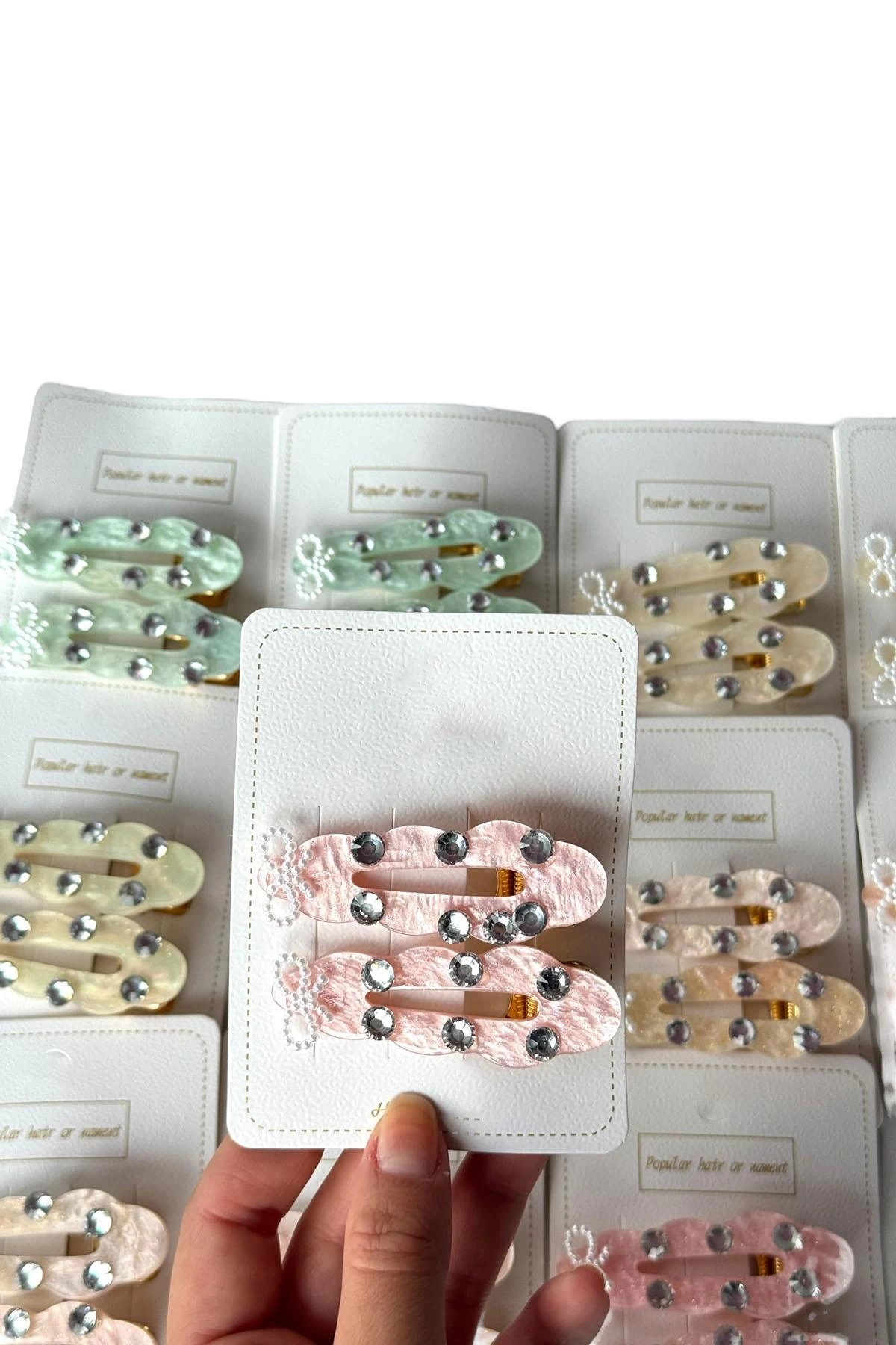 12'li Karışık Renk Taş Detaylı Yan Toka Set