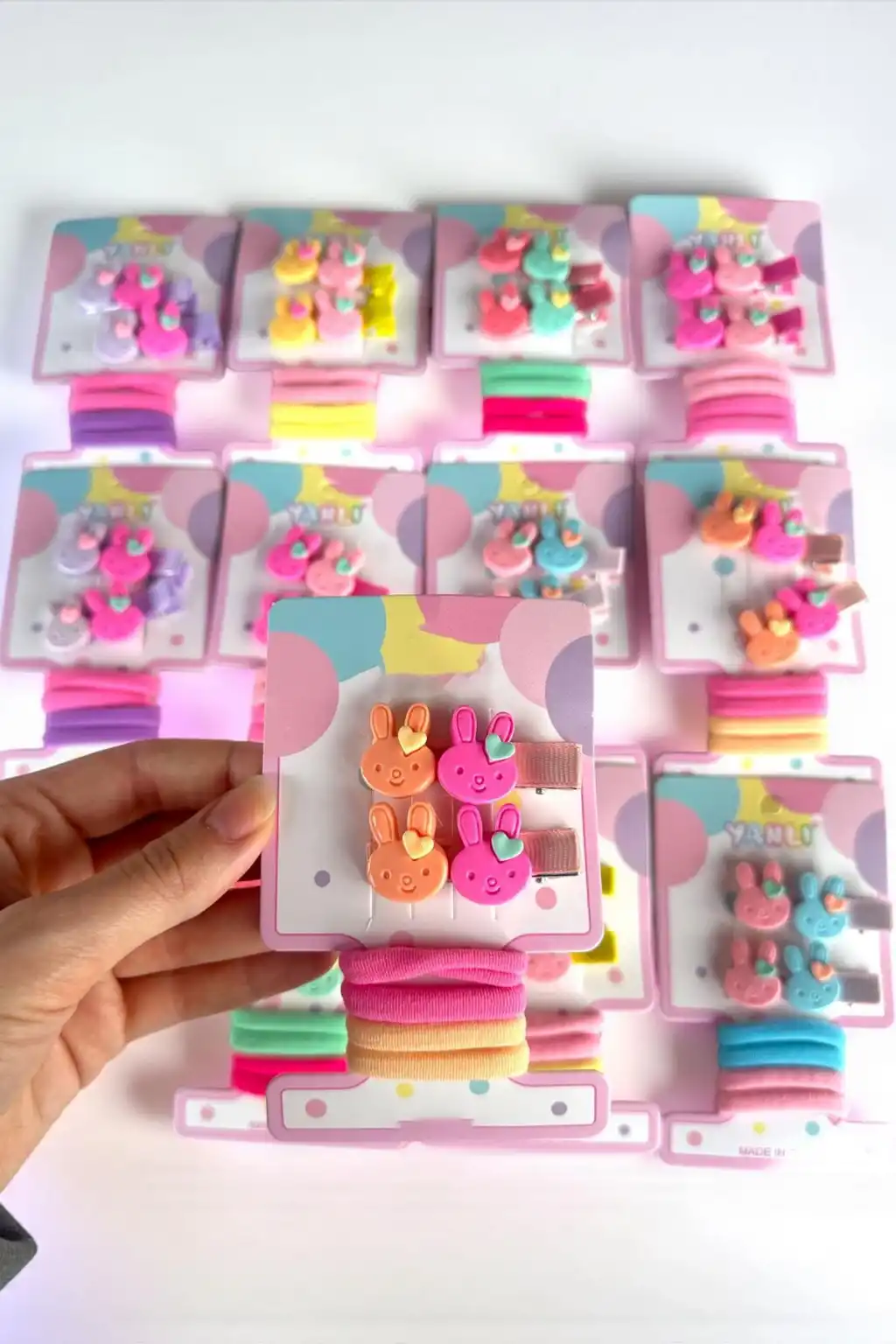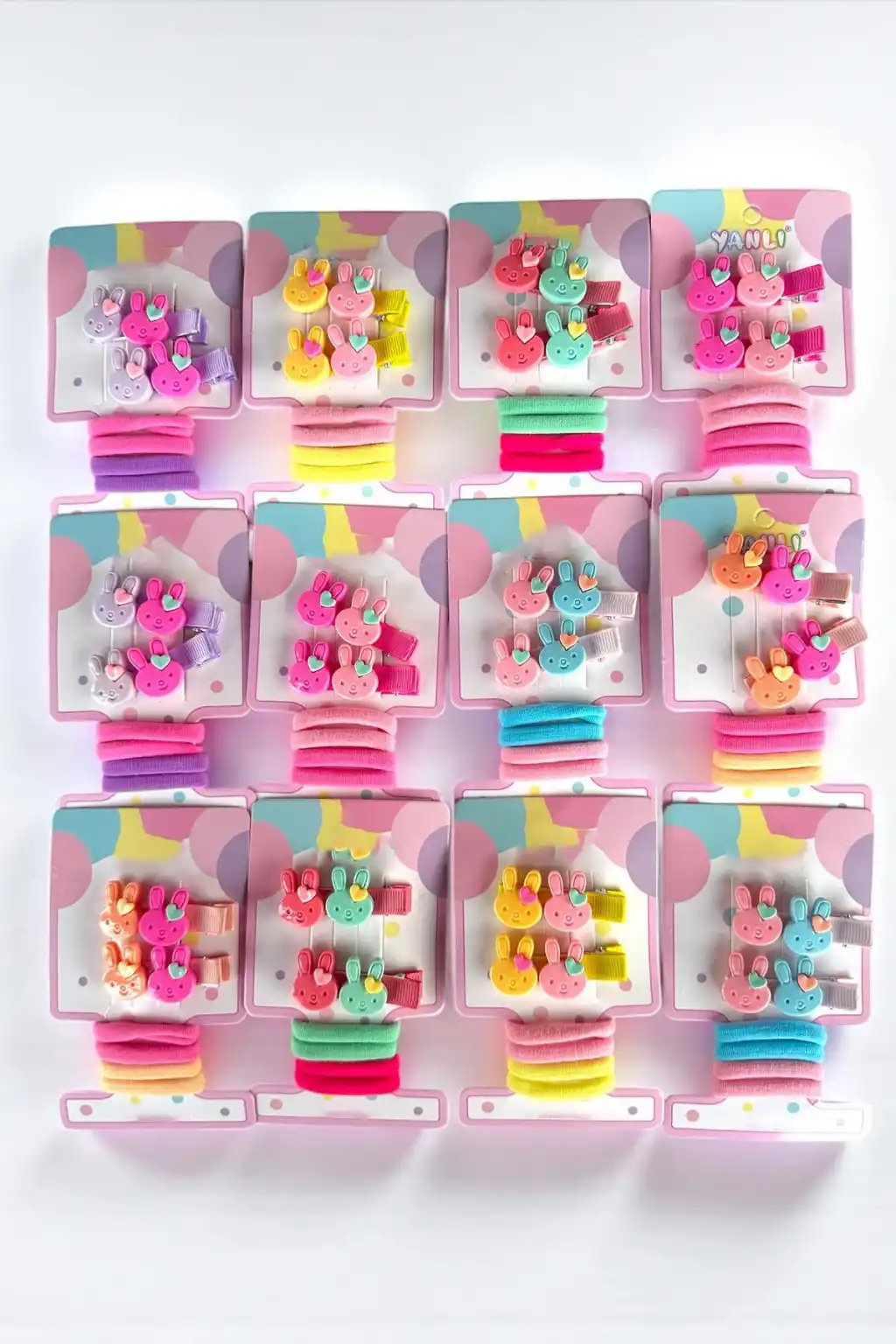 12'li Karışık Renk Tavşan Figürlü Lastik Toka Ve Yan Toka Set