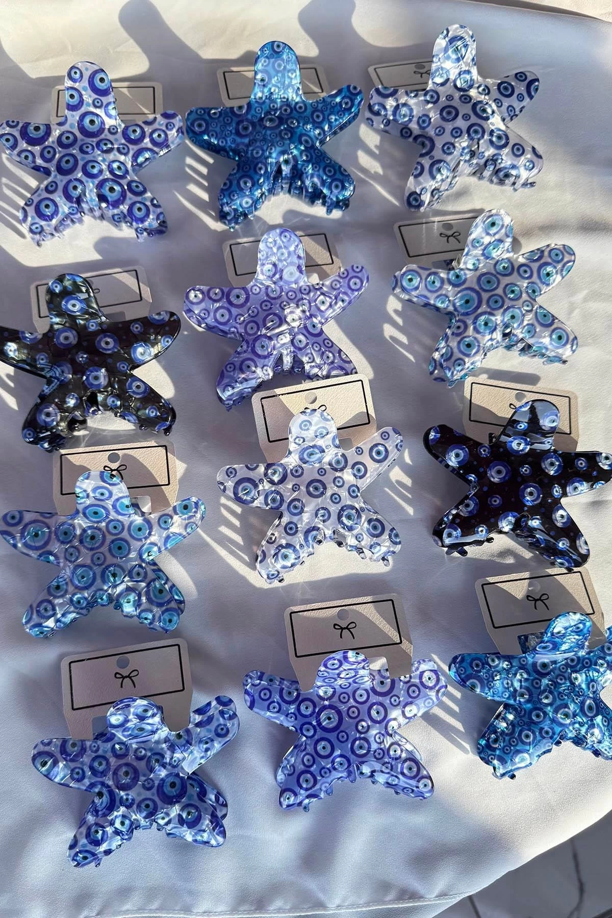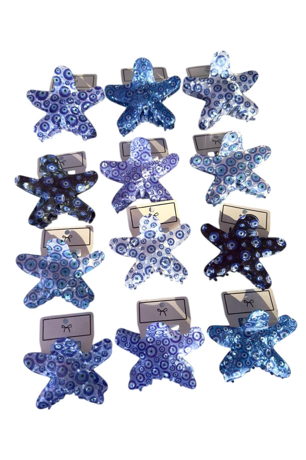 12'li Karışık Renk Yıldız Figürlü Nazar Boncuk Detaylı Mandal Toka Set
