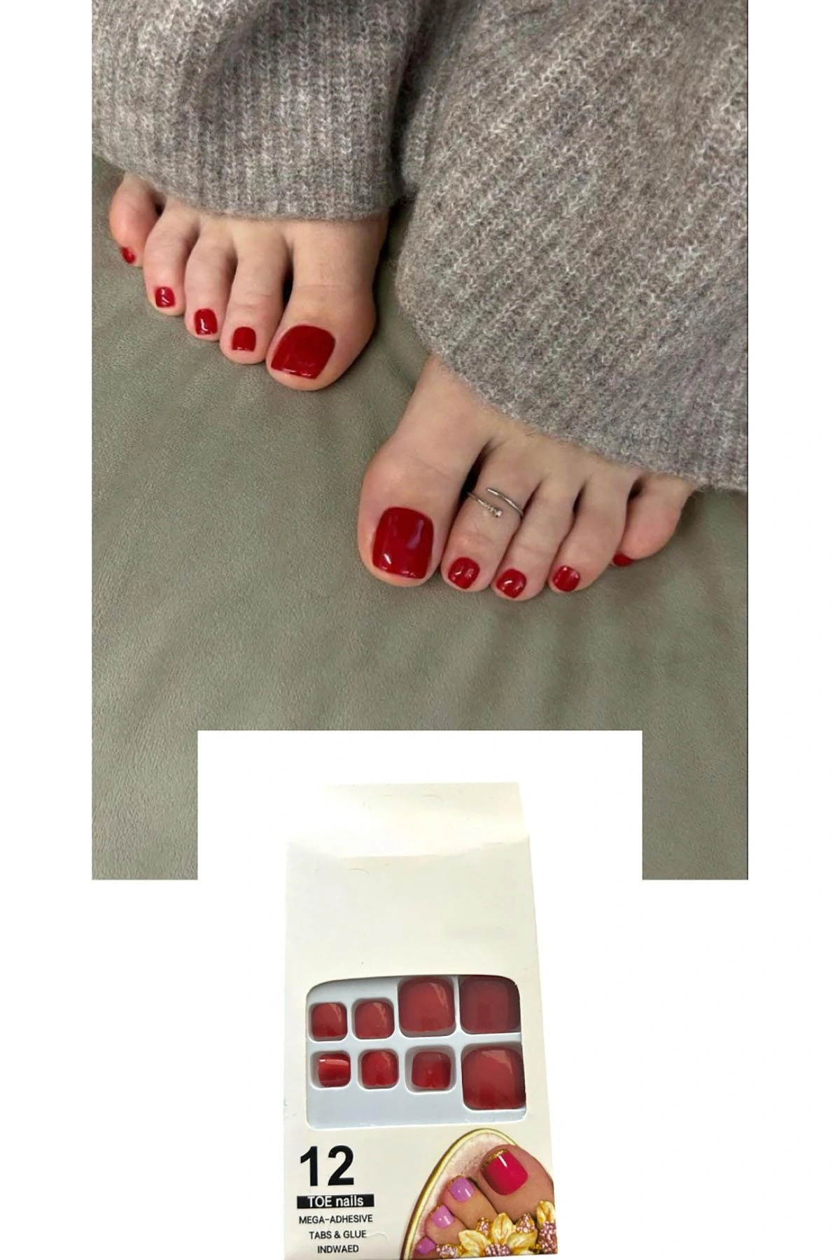 12'li Kırmızı Renk Takma Tırnak Set (Yapıştırıcılı)