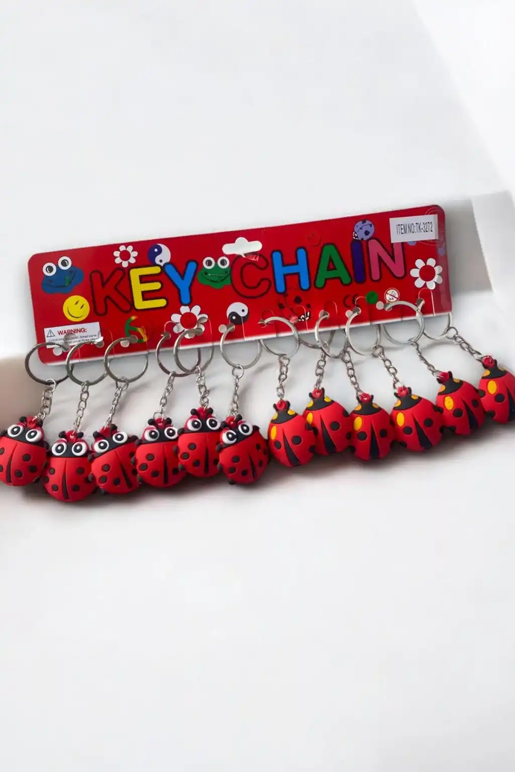 12'li Kırmızı Renk Uğur Böceği Figürlü Anahtarlık Set