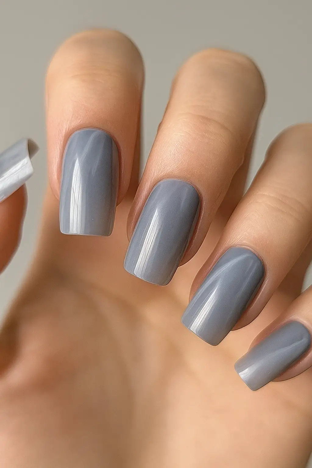 12'li Koyu Gri Renk Kedi Gözü Yansımal Takma Tırnak Set (Yapıştırıcılı)