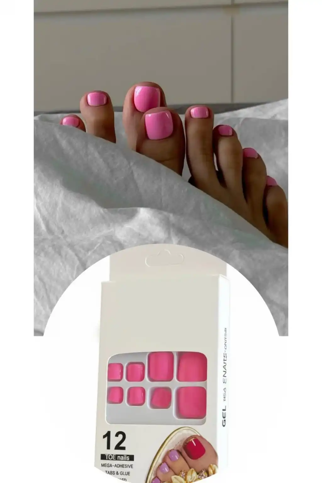 12'li Pembe Renk Takma Tırnak Set (Yapıştırıcılı)