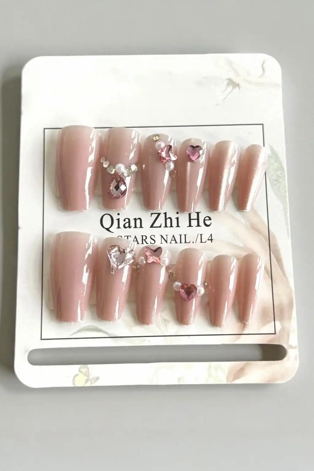 Zarif ve kendinden cilalı takma tırnaklar, etkileyici bir görünüm sağlar.