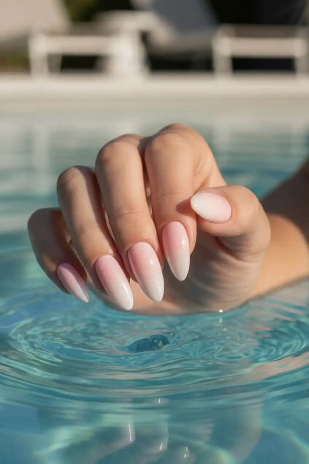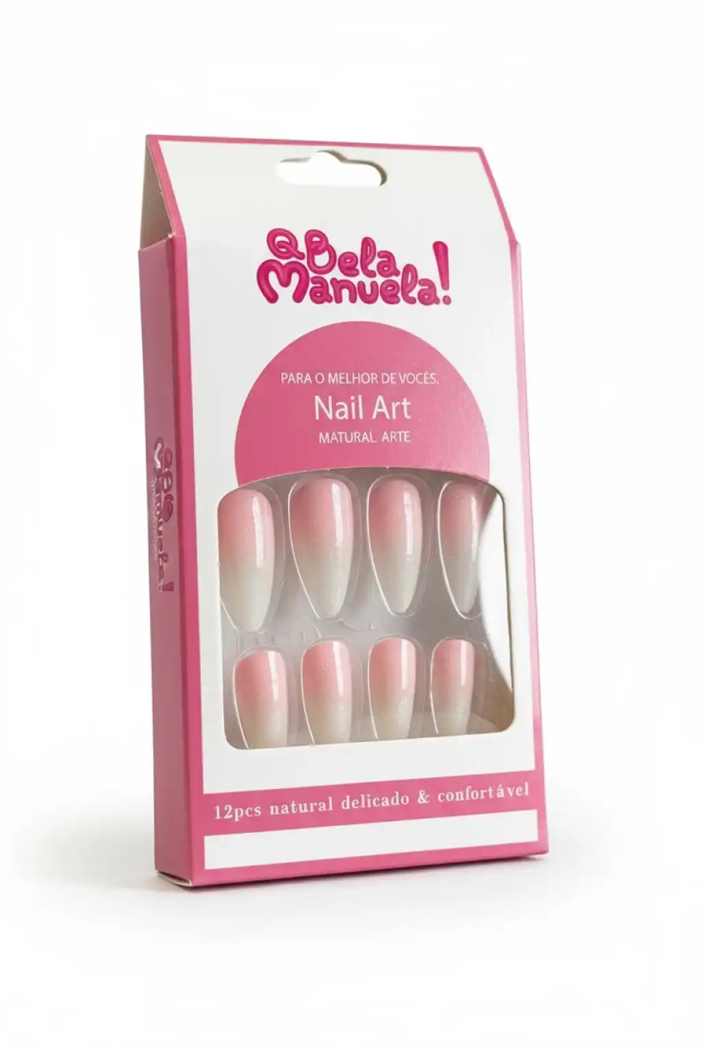 24'lü Pudra Ve Beyaz Renk Jel Görünümlü Takma Tırnak (Yapıştırıcılı)